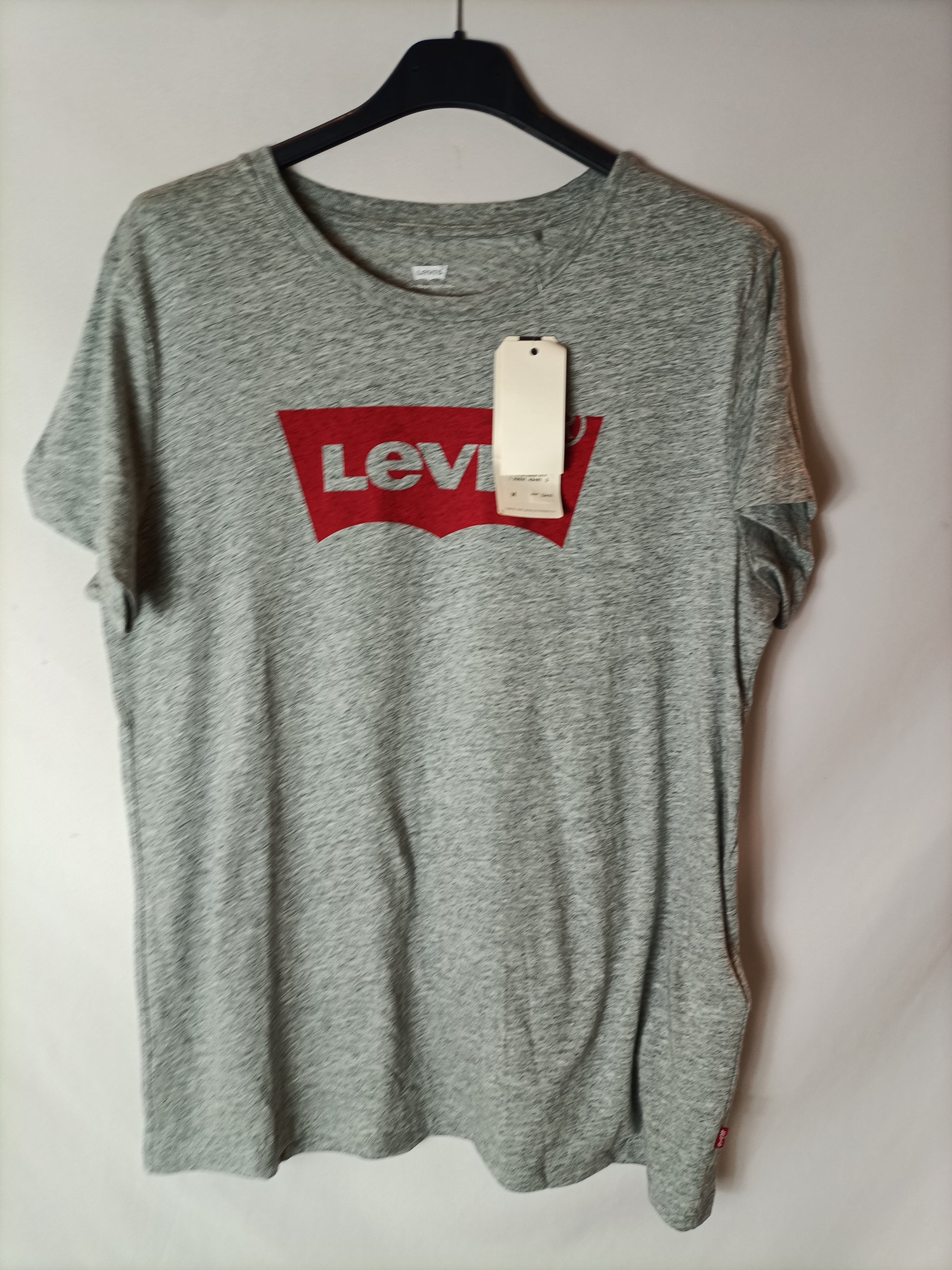 NUEVO CON ETIQUETA. Camiseta gris jaspeada Letras.