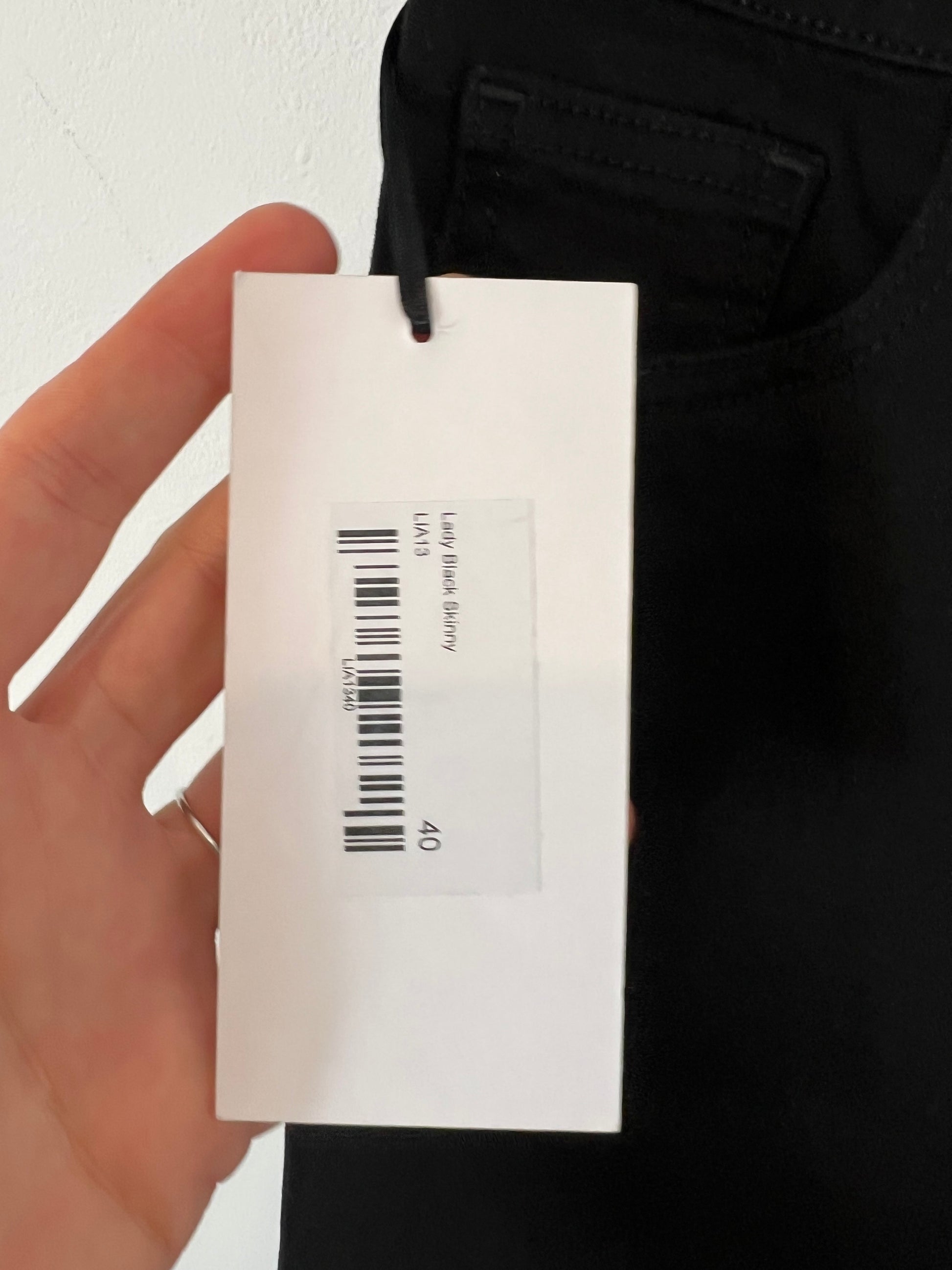 NUEVO CON ETIQUETA. Denim negro skinny semi elástico. Cintira 38cm, largo 100cm