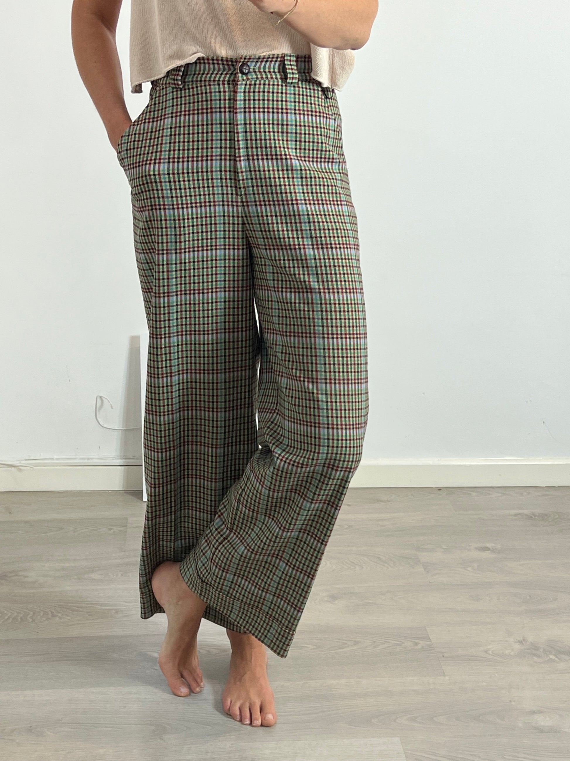 Pantalón ancho de cuadros de varios de colores . Cintura 37cm, largo 103cm
