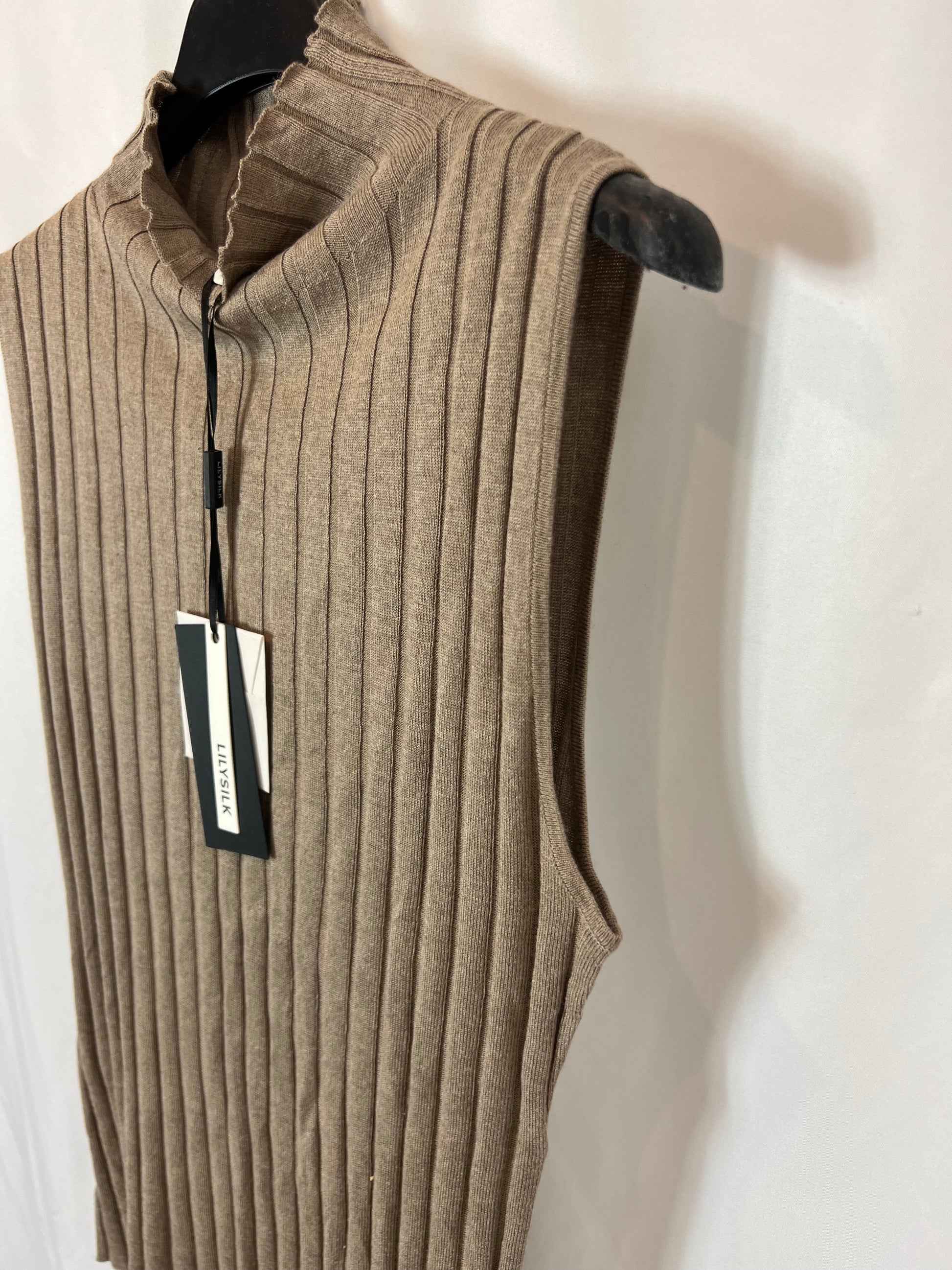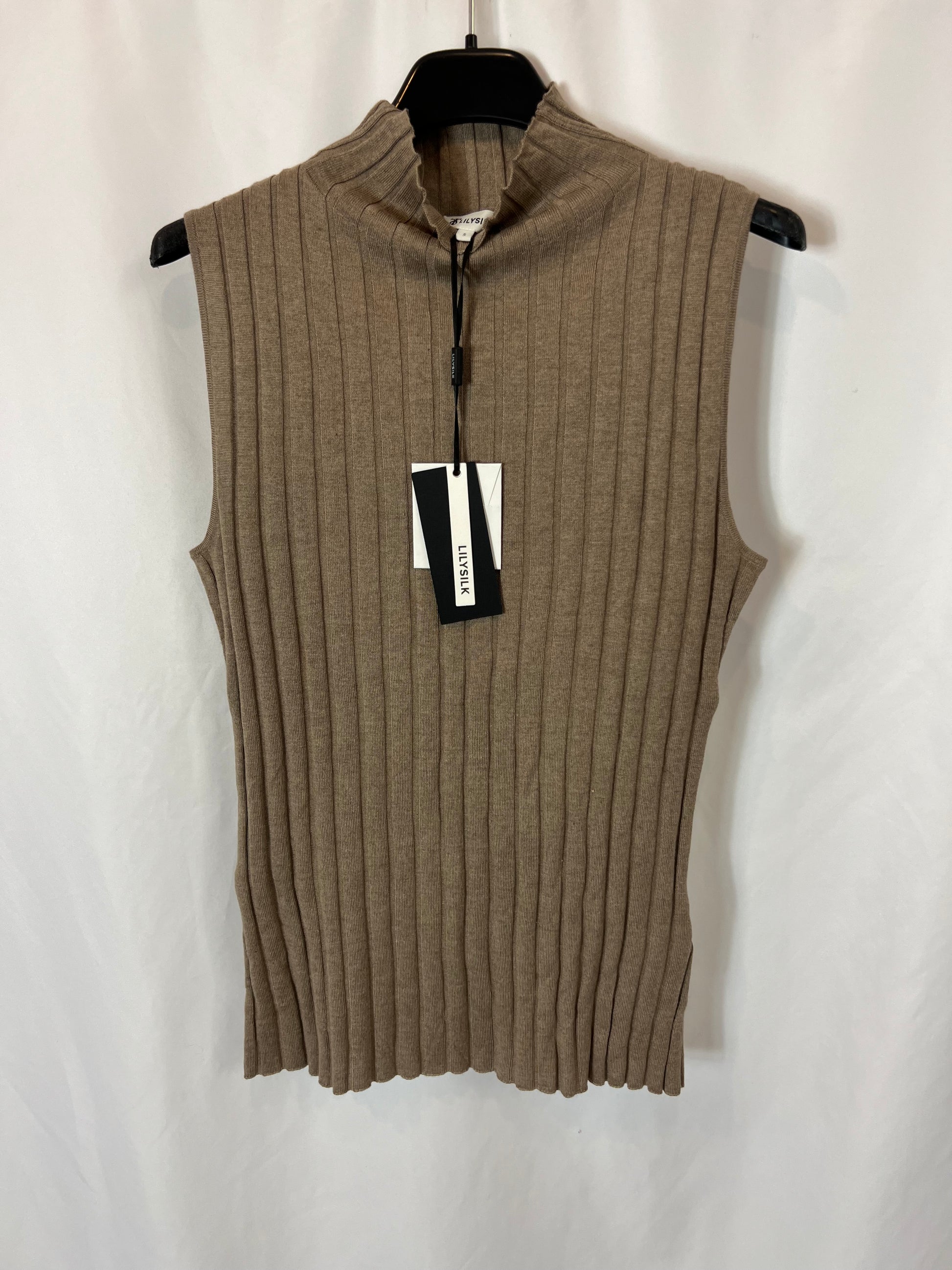 NUEVO CON ETIQUETA. Top beige canalé cuello perking. seda y cashmere . De sisa a siaa 43cm, largo 59cm