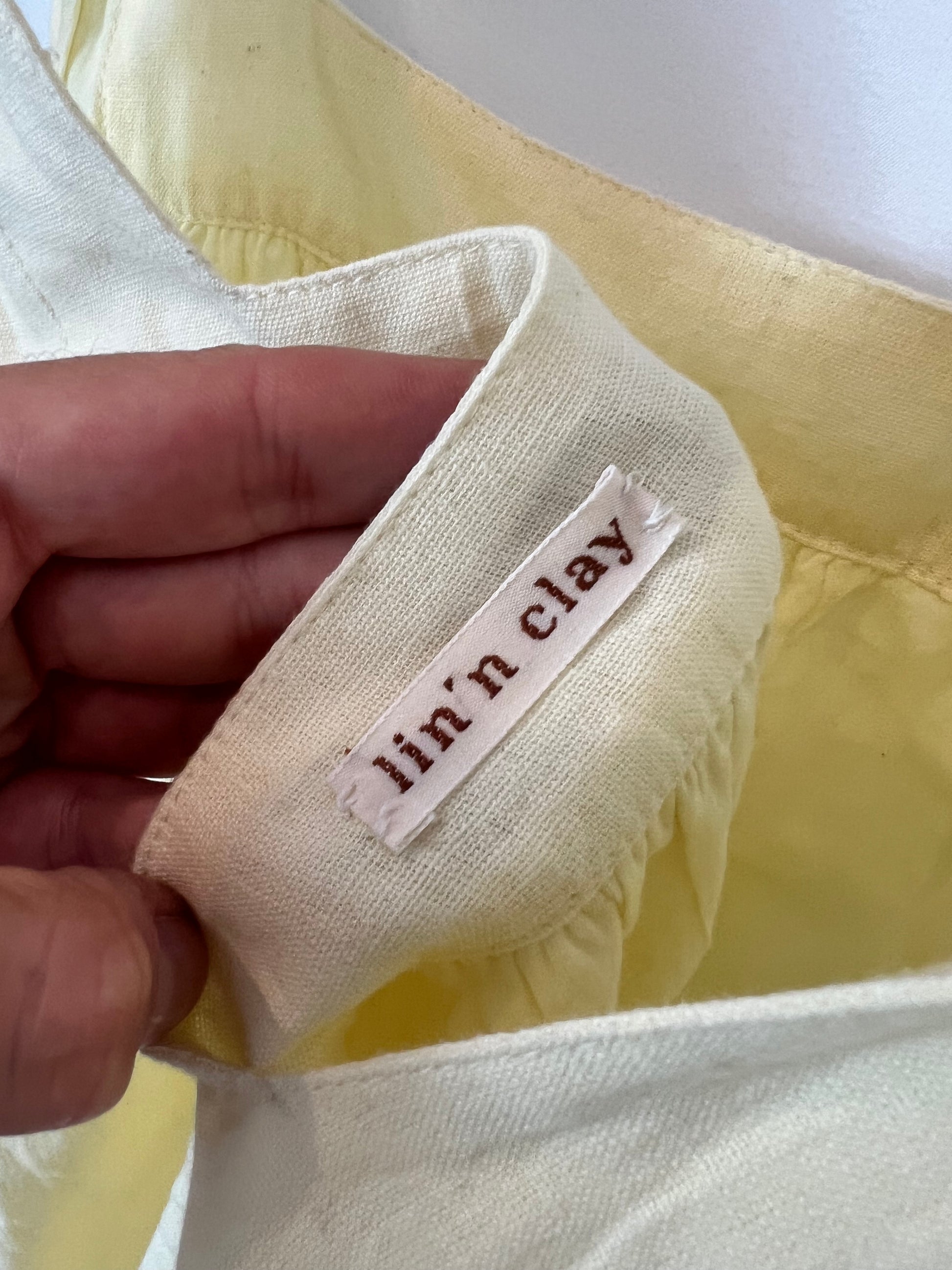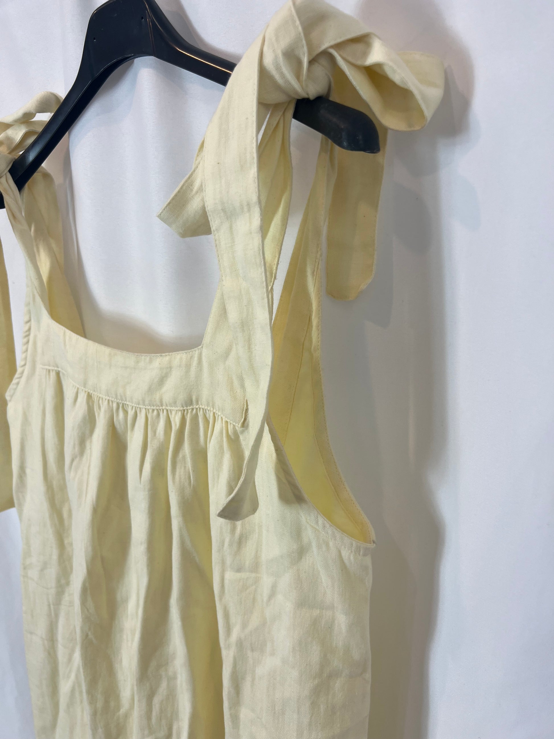 Vestido corto color vainilla lino. De sisa a sisa 45cm, largo 81cm. Tara; Nini mancha parte inferior (foto)