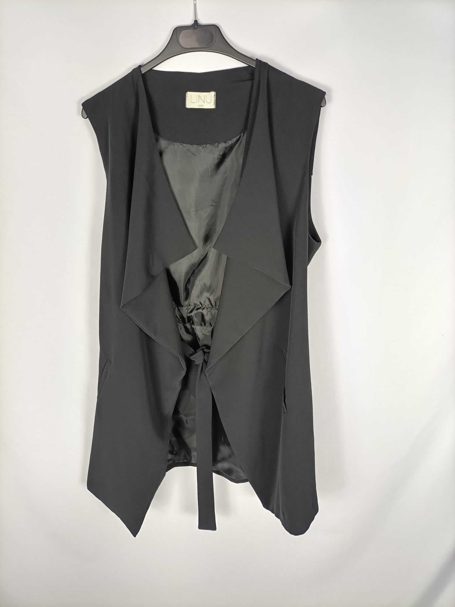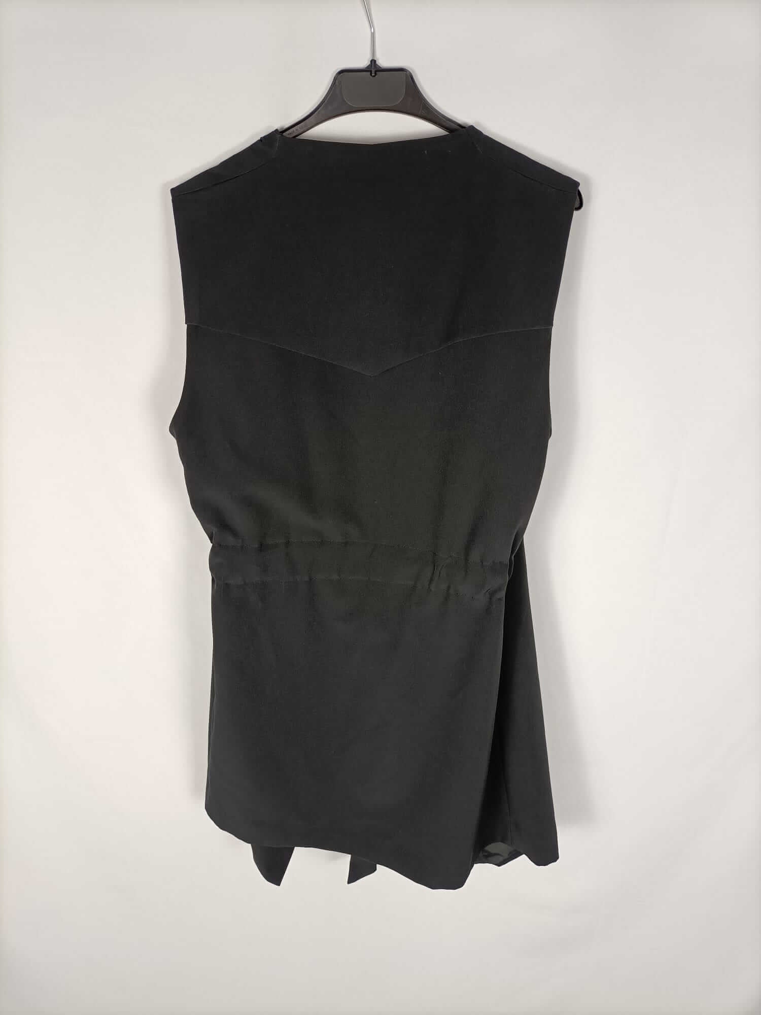 Linu. Chaleco negro sin mangas fluido con lazada interior para abrochar. No elástico. De sisa a sisa 49 cm largo 83 cm
