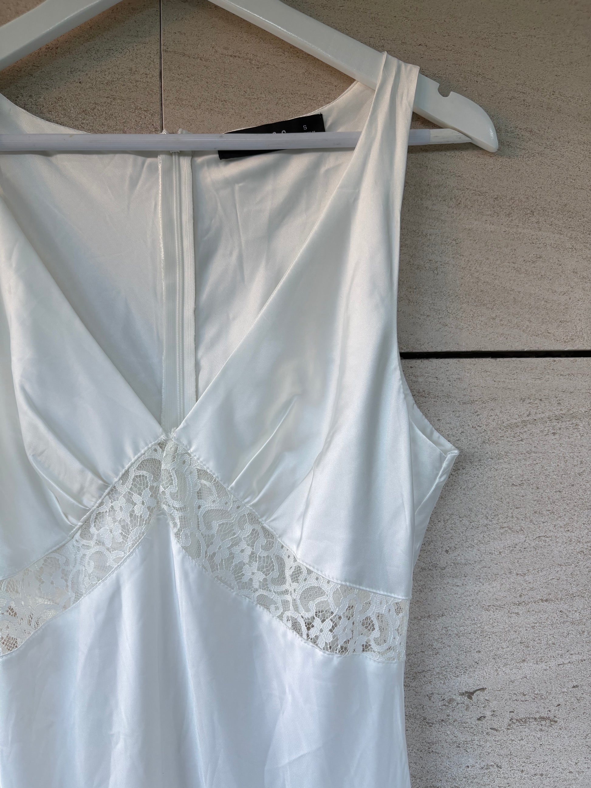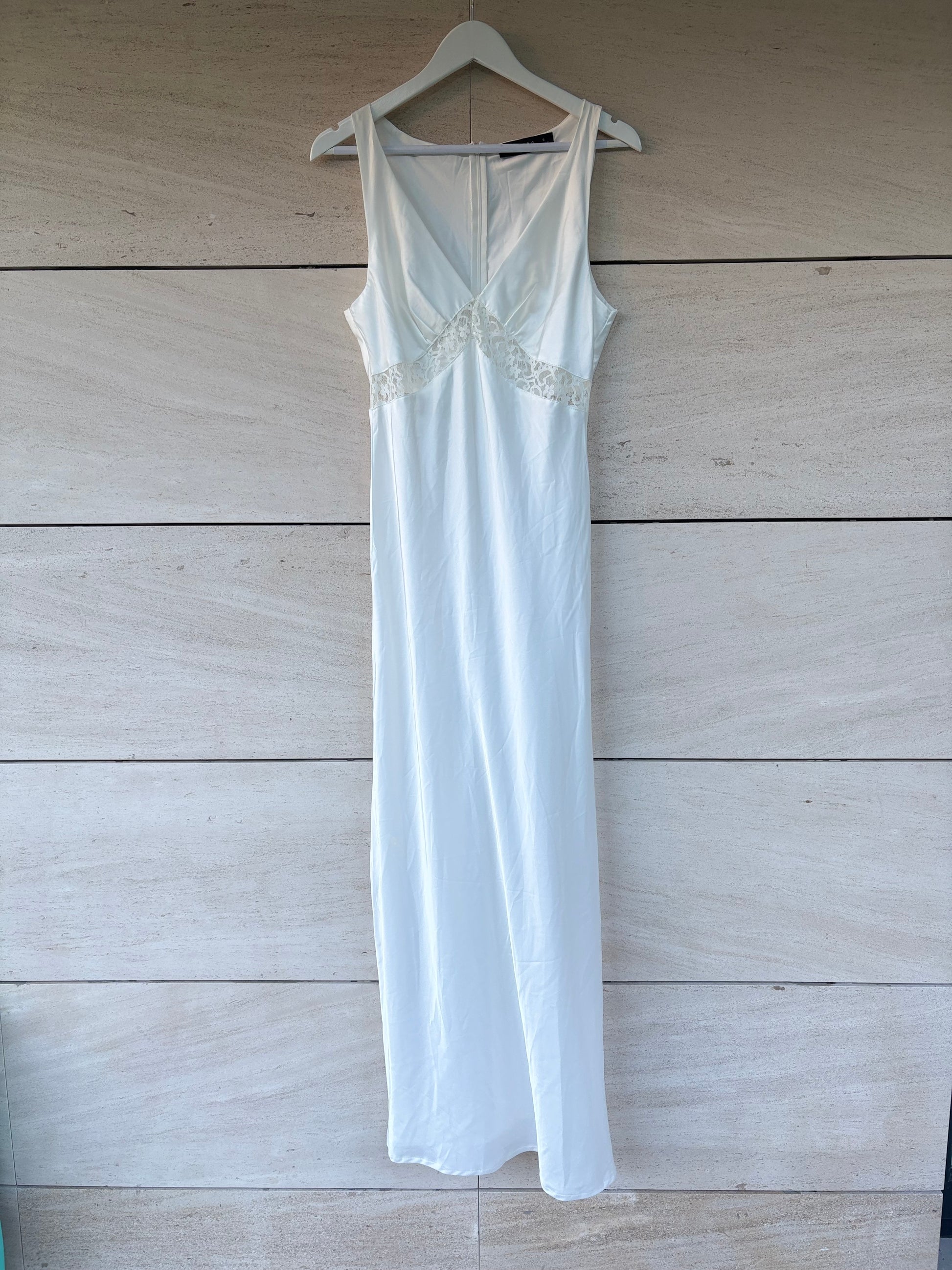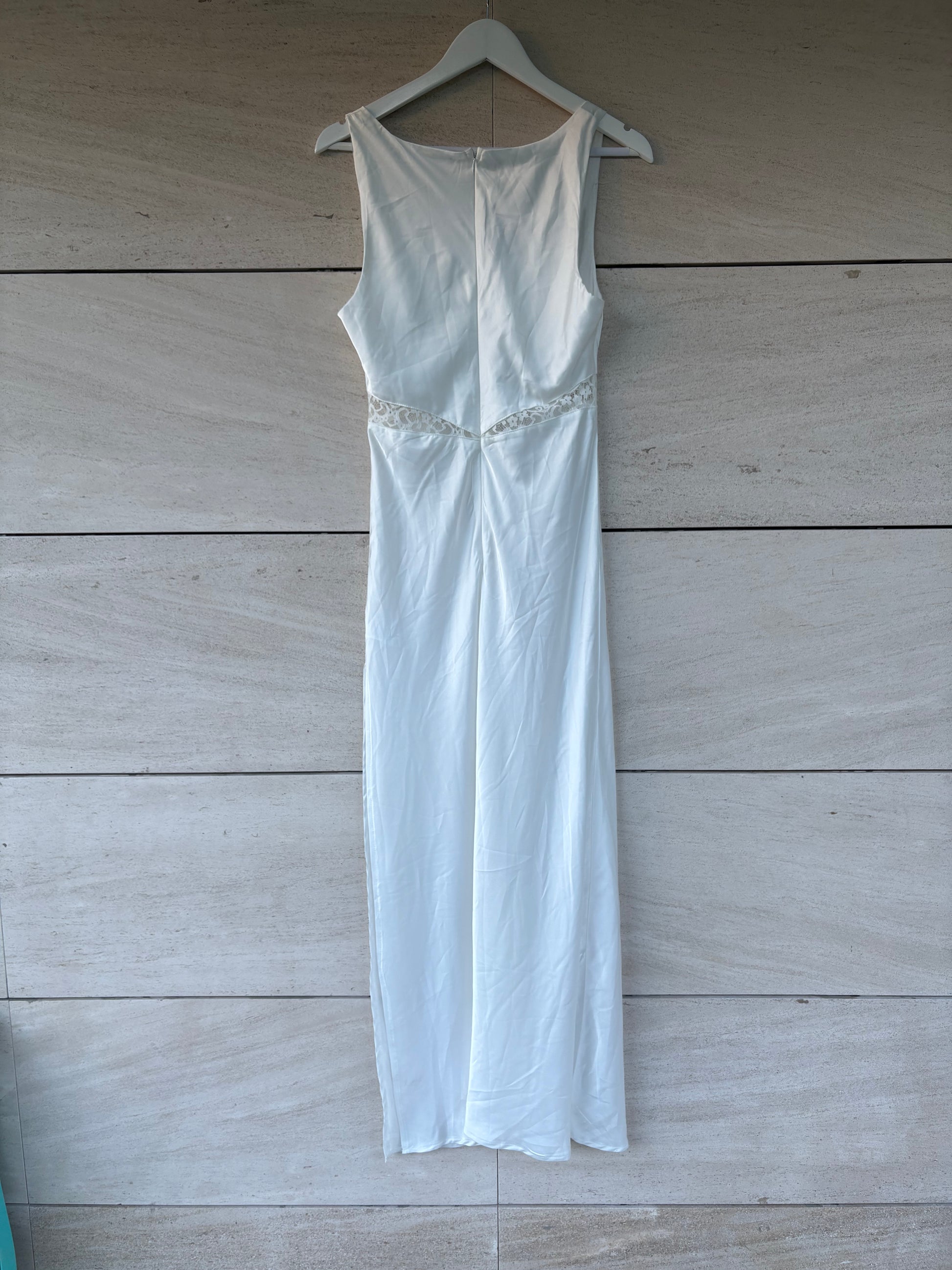 Vestido largo lencero blanco. No elastico. Espalda 47 cm, cintra 39 cm, Largo 152 cm. cintura 35cm