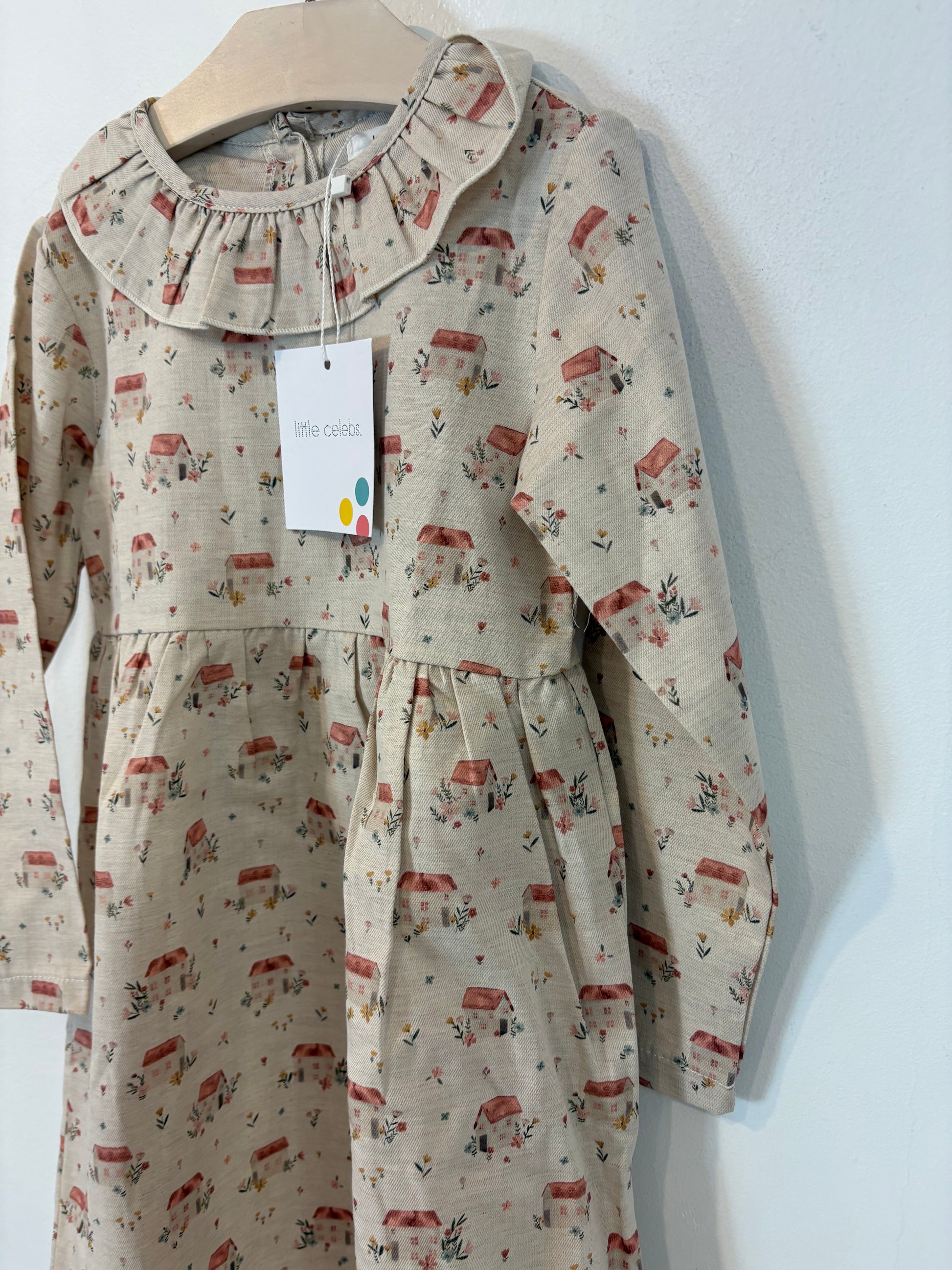 NUEVO CON ETIQUETA. Vestido beige dibujo casas