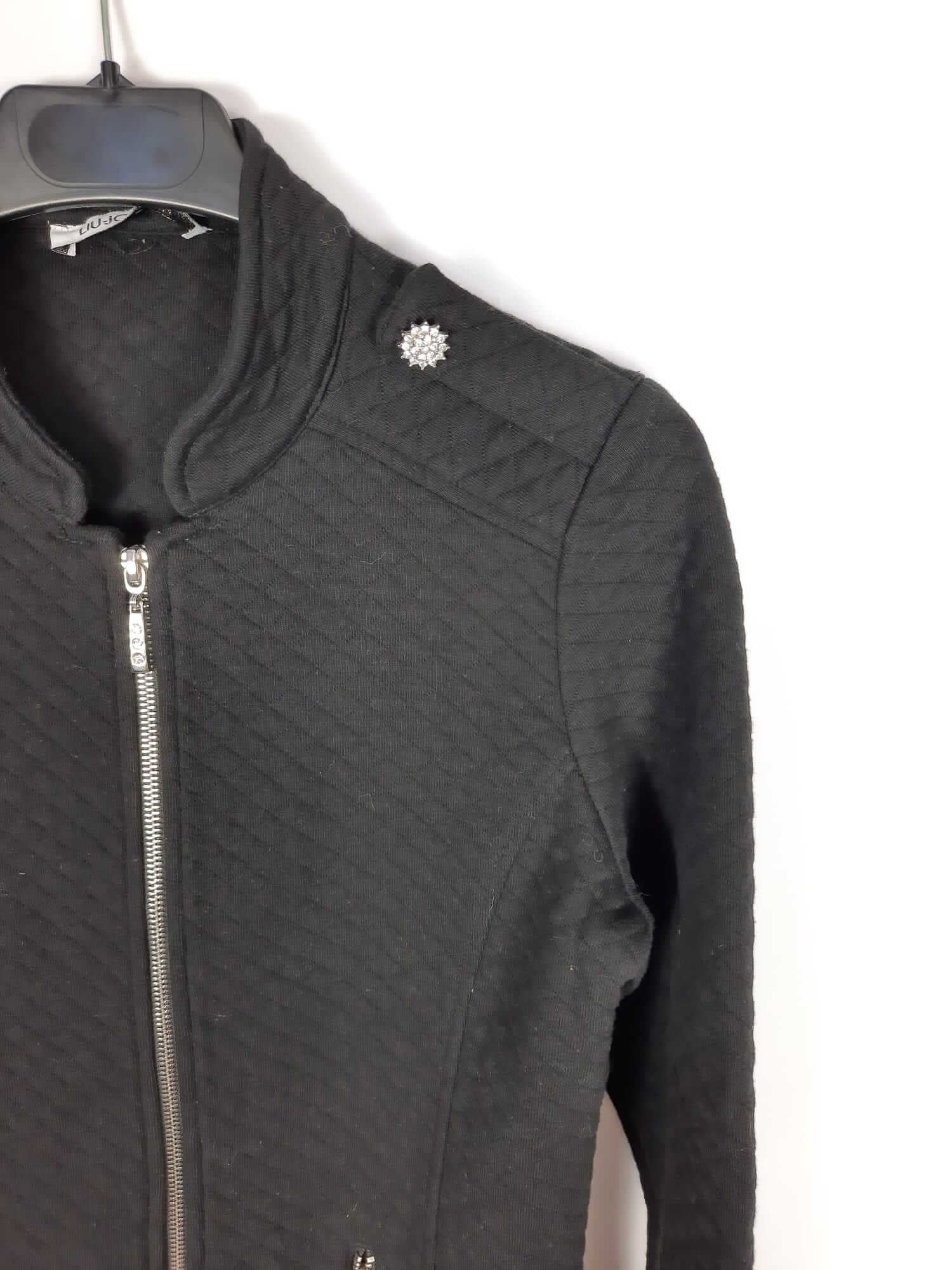 Liu-jo. Chaqueta negra estilo sudadera negra. Elásticom detae de pedrería. Largo 57 cm