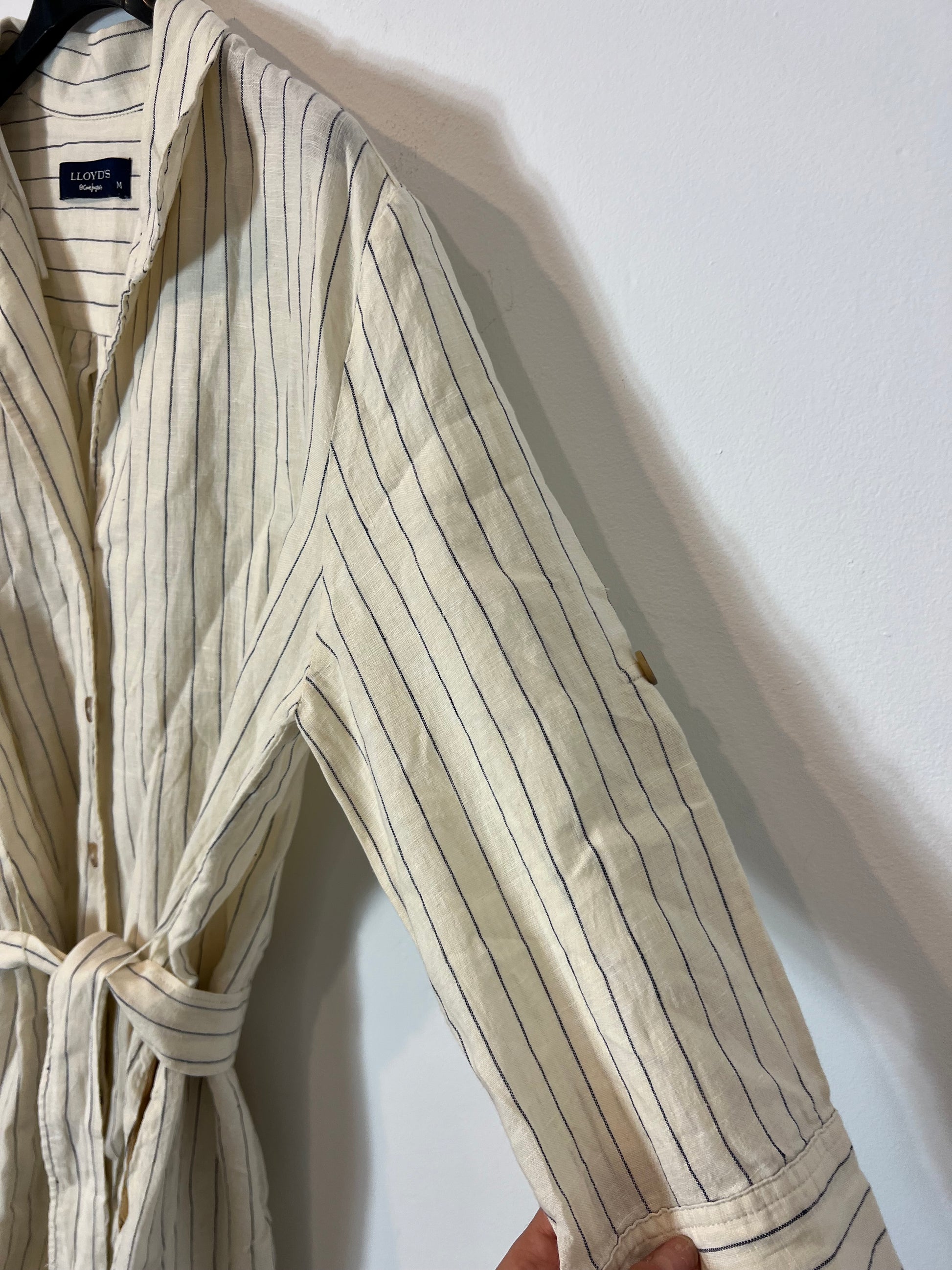 Vestido midi camisero abotonado con cinturón de lazada. De sisa a sisa 54cm, largo 121cm