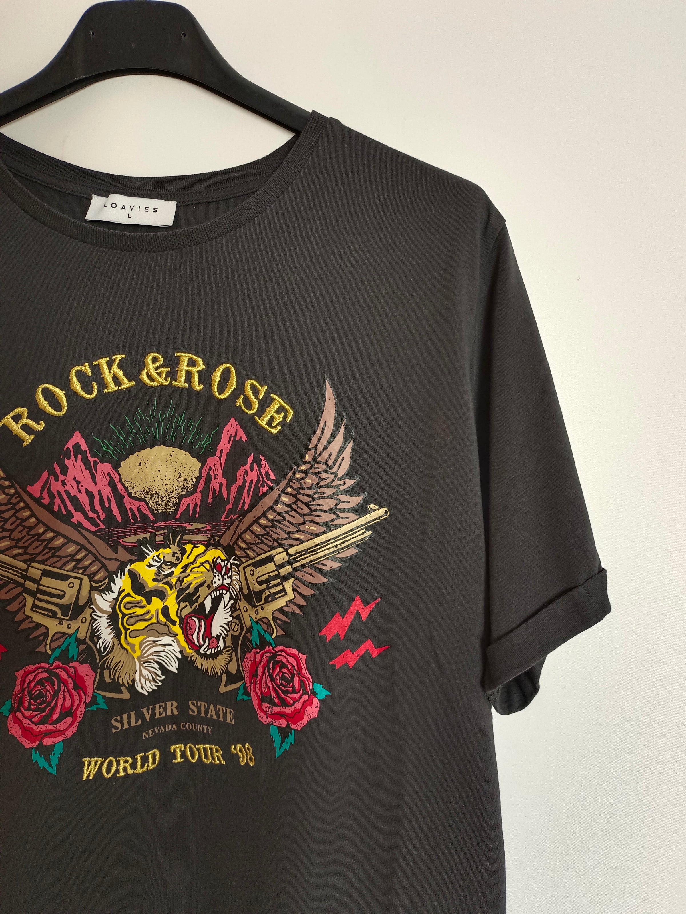 LOAVIES. Camiseta gris ""rock&rose" T.l