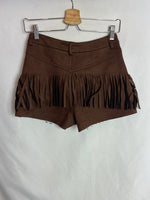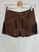 Pantalón corto de antelina marrón con flecos.