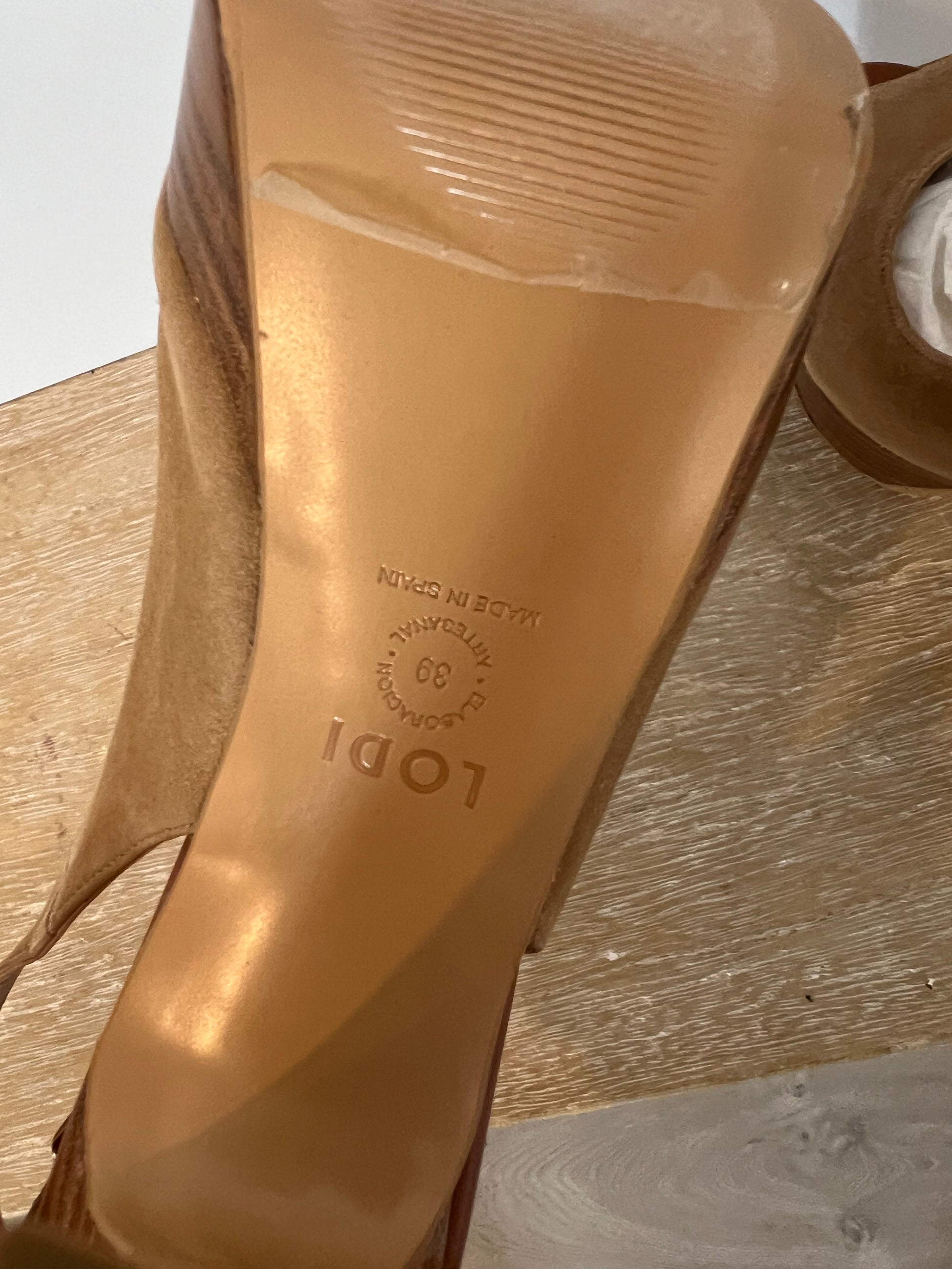 LODI. Tacones piel camel peeptoes. T 39