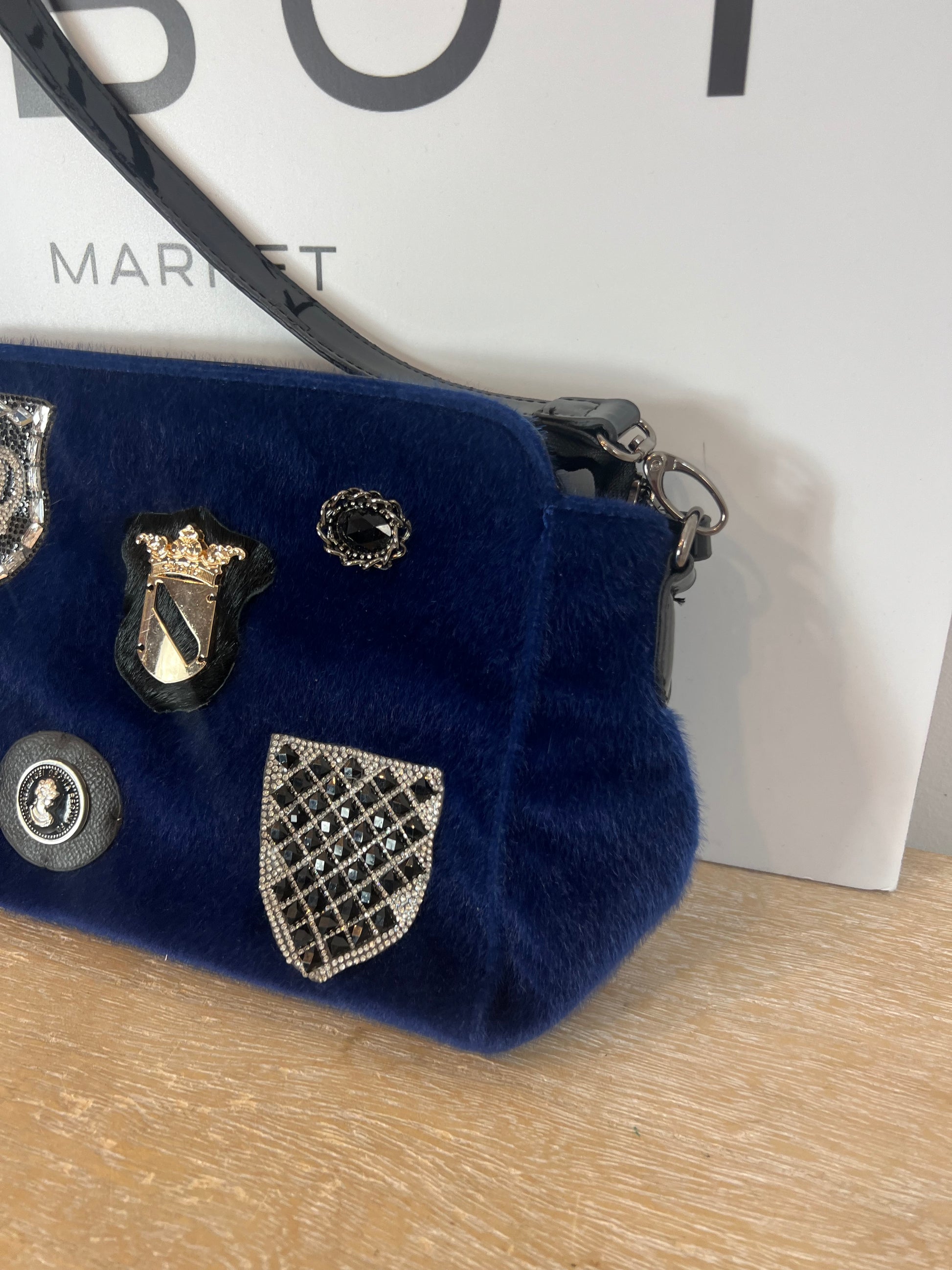 LOLA CASADEMUNT. Bolso azul terciopelo abalorios