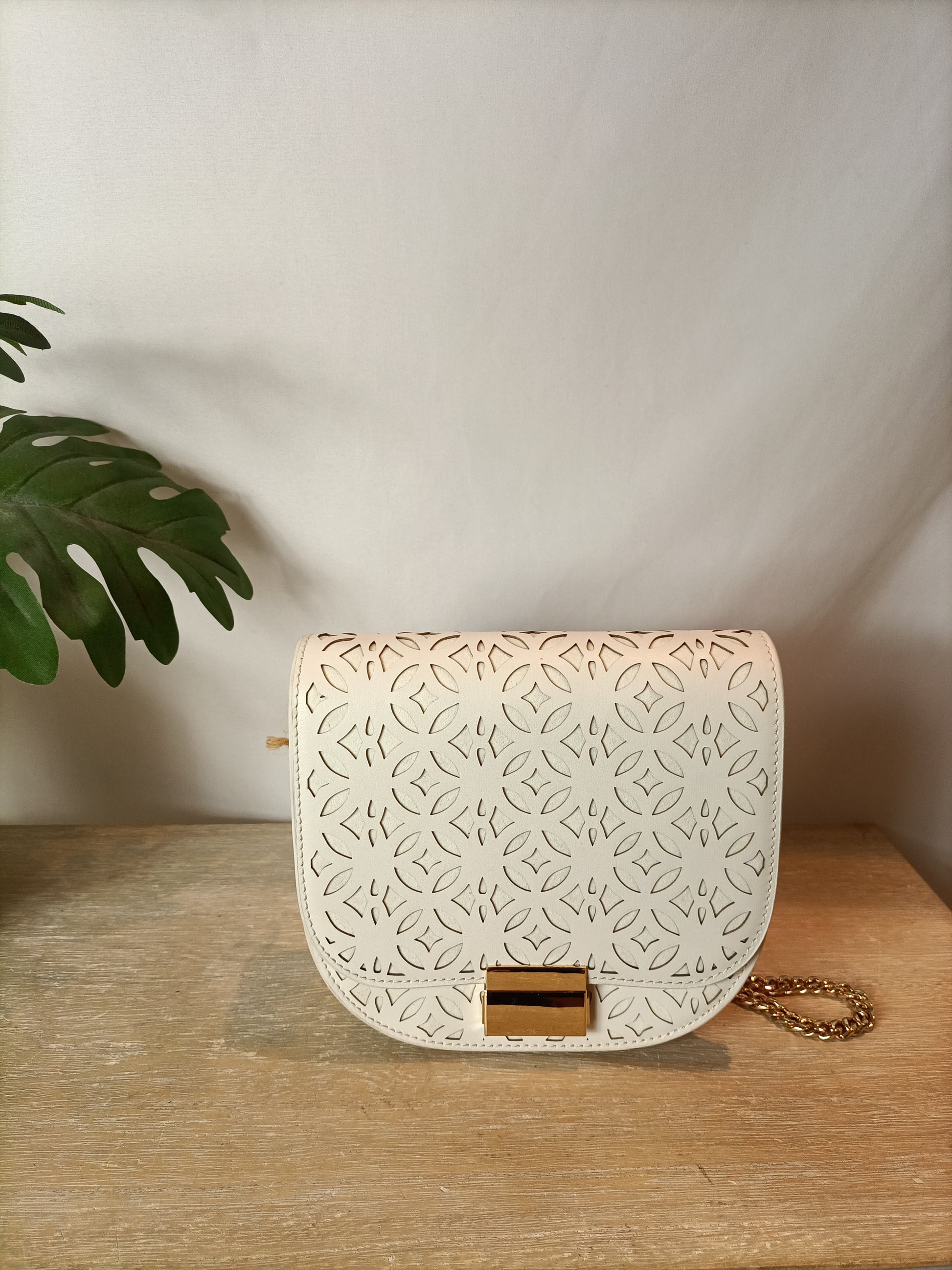 NUEVO SIN USO. Bolso blanco troquelado