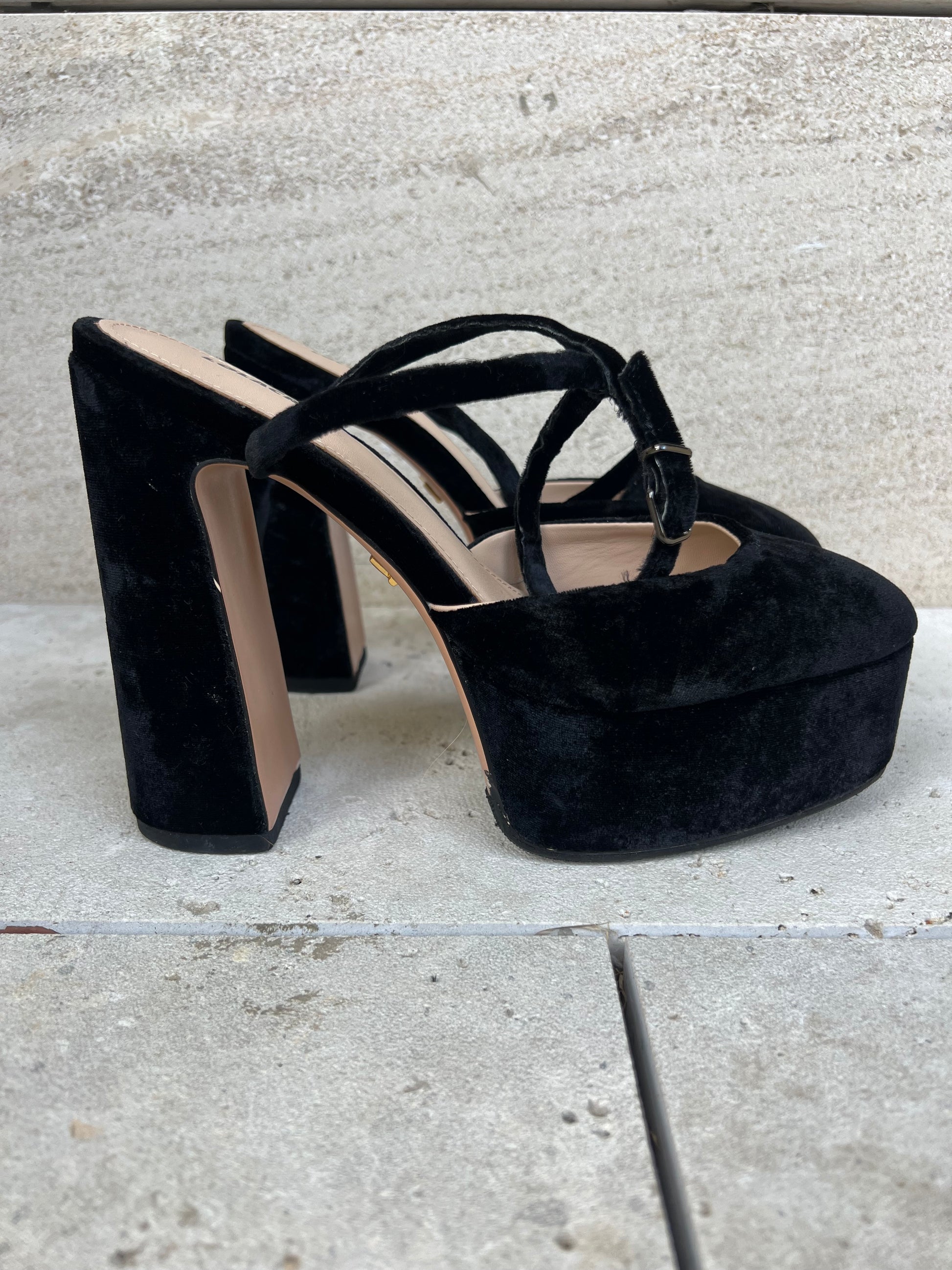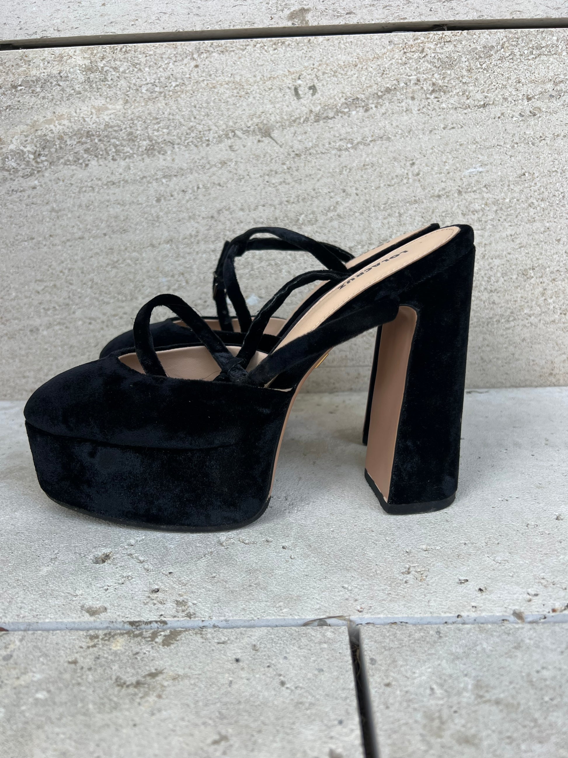 LOLA CRUZ. Sandalia terciopelo plataforma. T 39