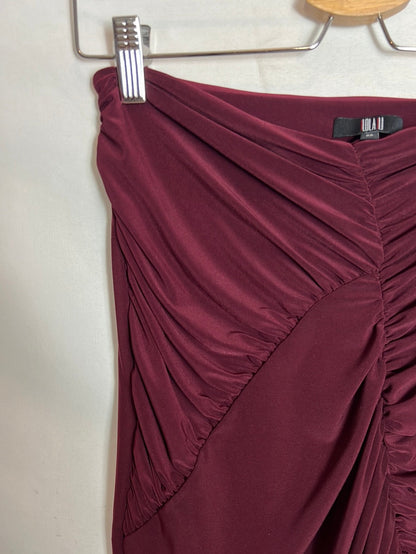 LOLA LI. Falda fruncida burdeos elástica. T 38 (S)