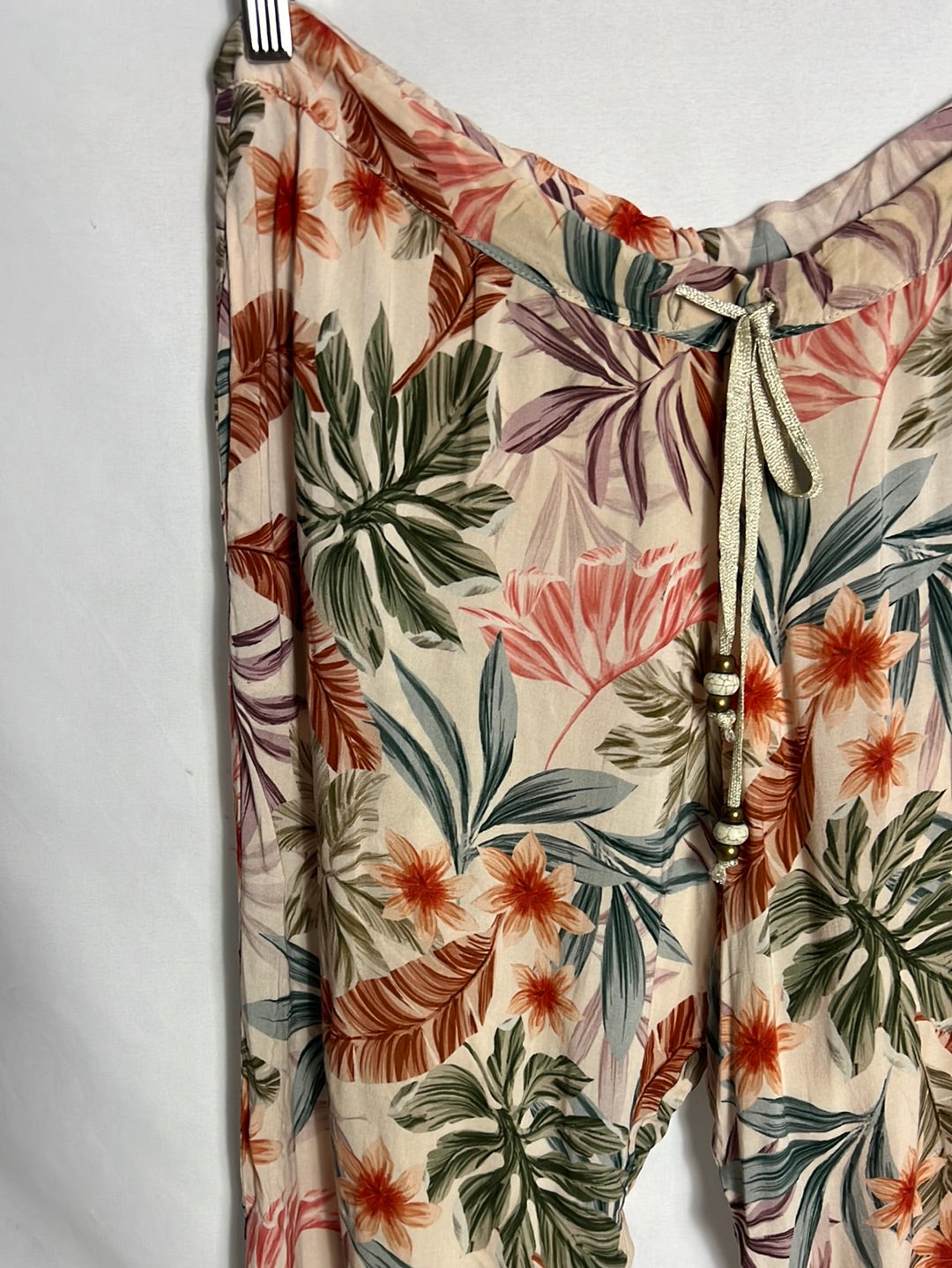 Pantalones beige estampados fluidos. Tejido no elástico. Cintura 42cm totalmente estirado