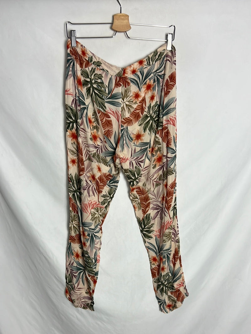LOLA LOVES. Pantalones beige estampados fluidos. T M