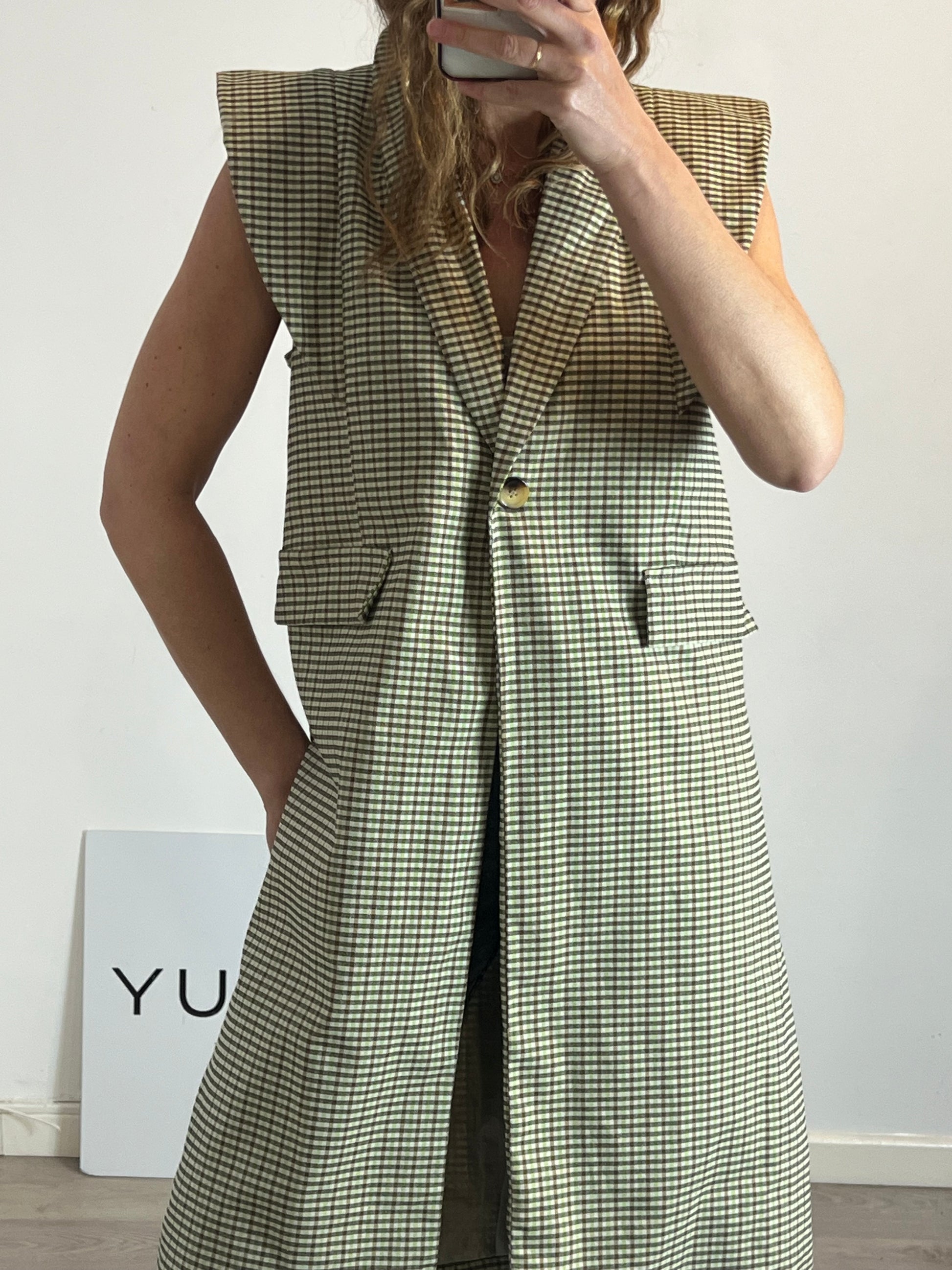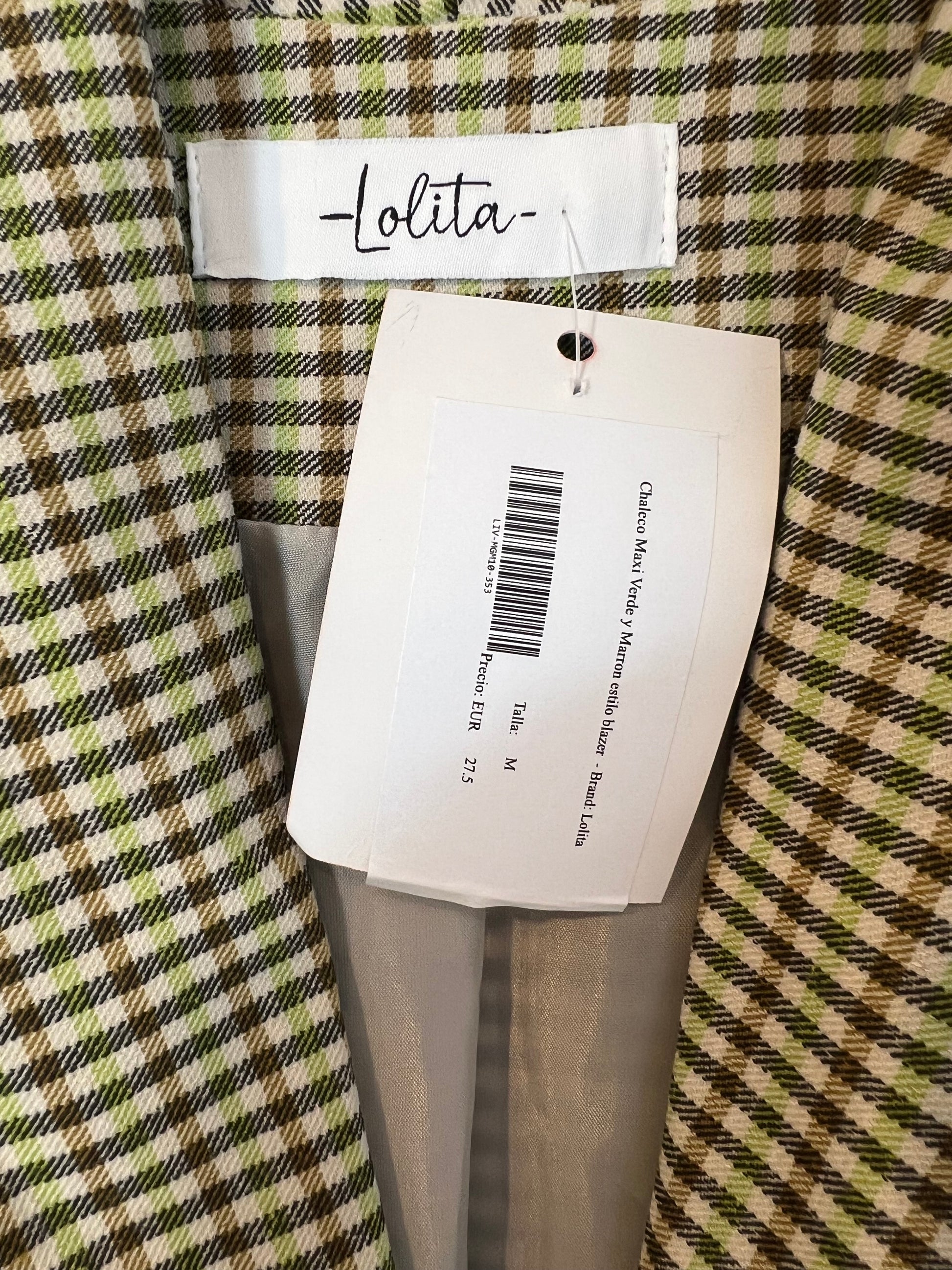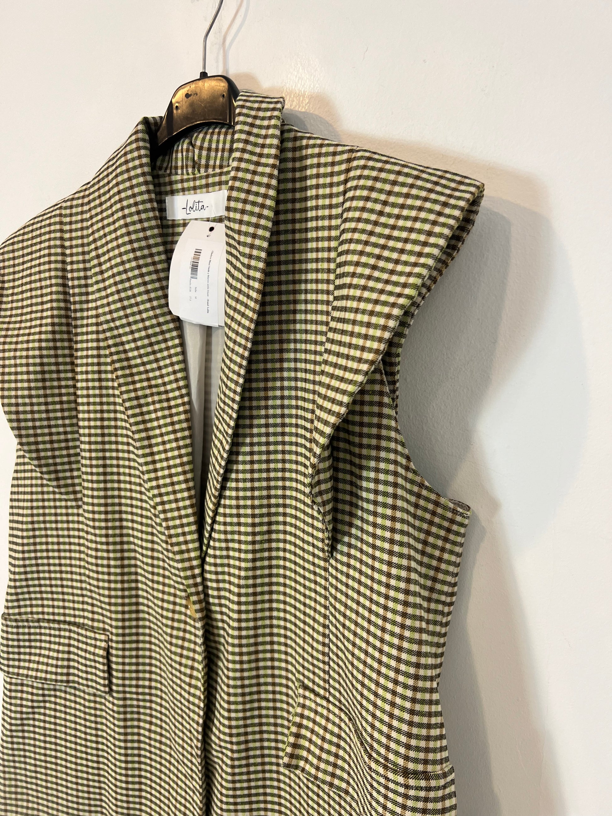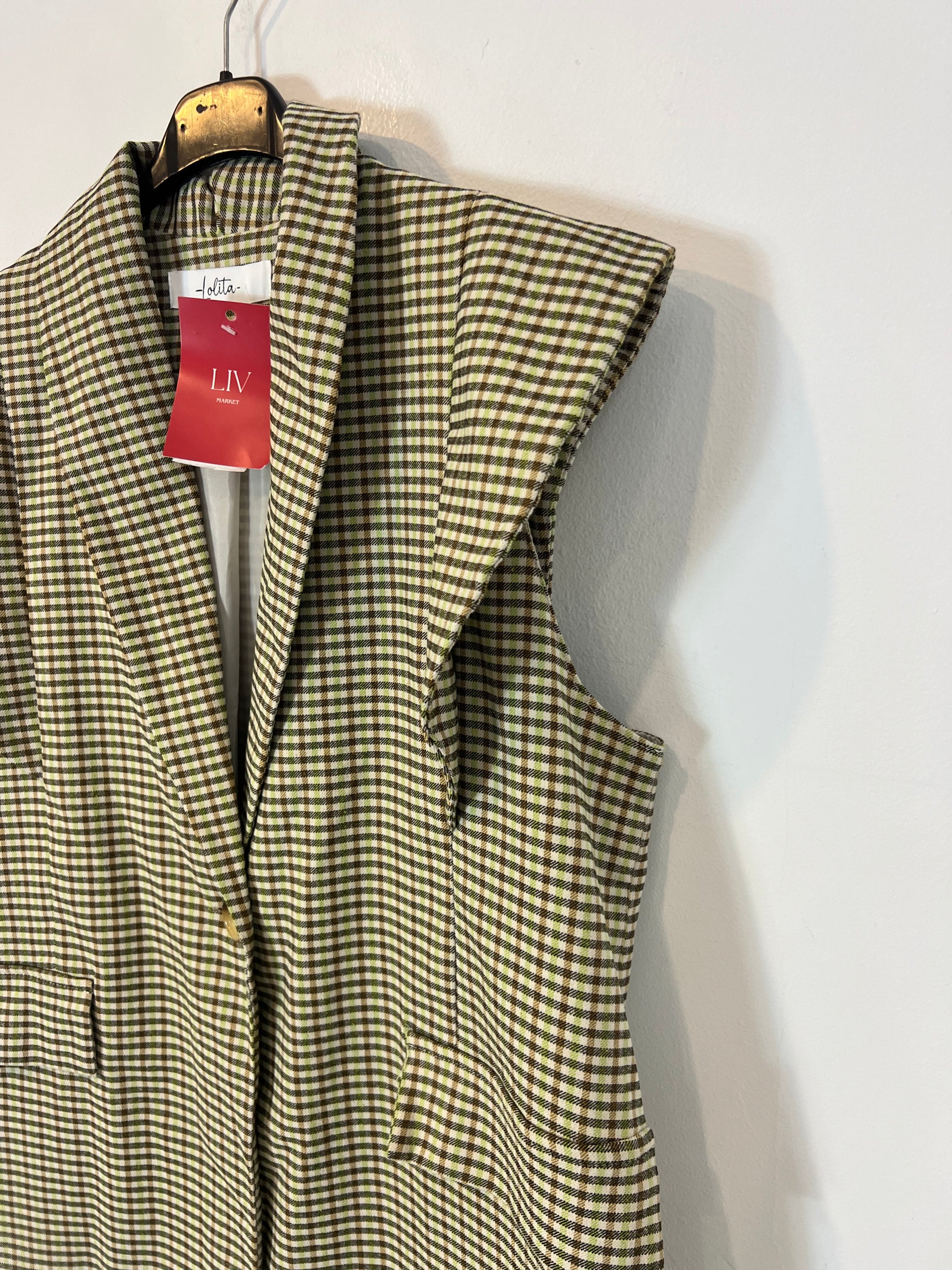 LOLITA. Chaleco de cuadros verde y marrón T.m