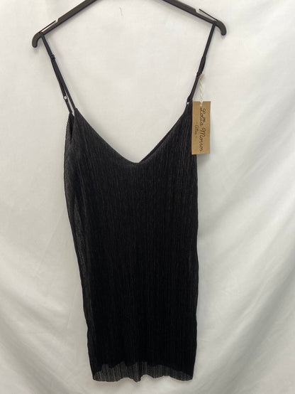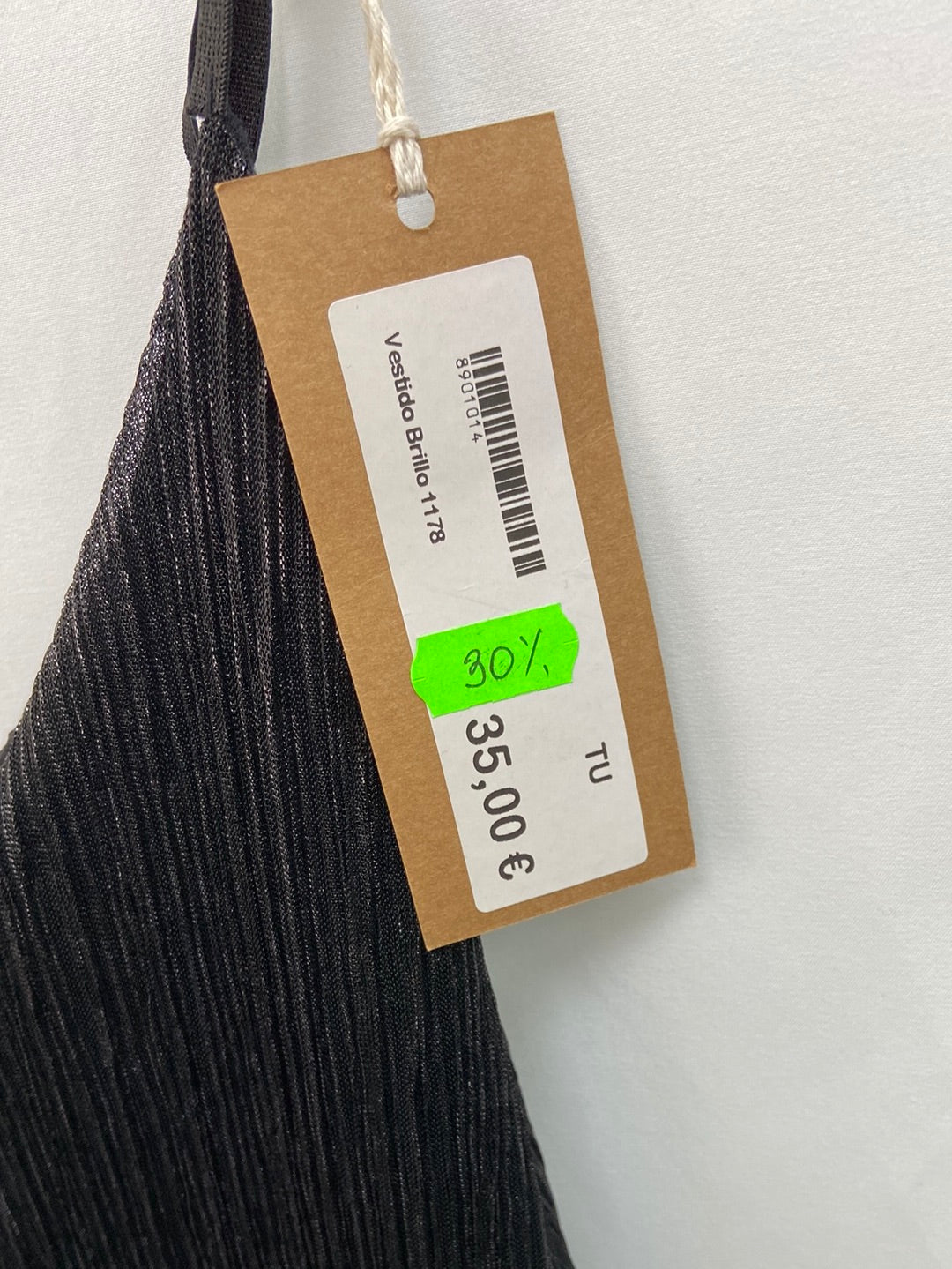 NUEVA CON ETIQUETA .vestido negro fluido de tejido plisado. Elástico y tirantes regulables .