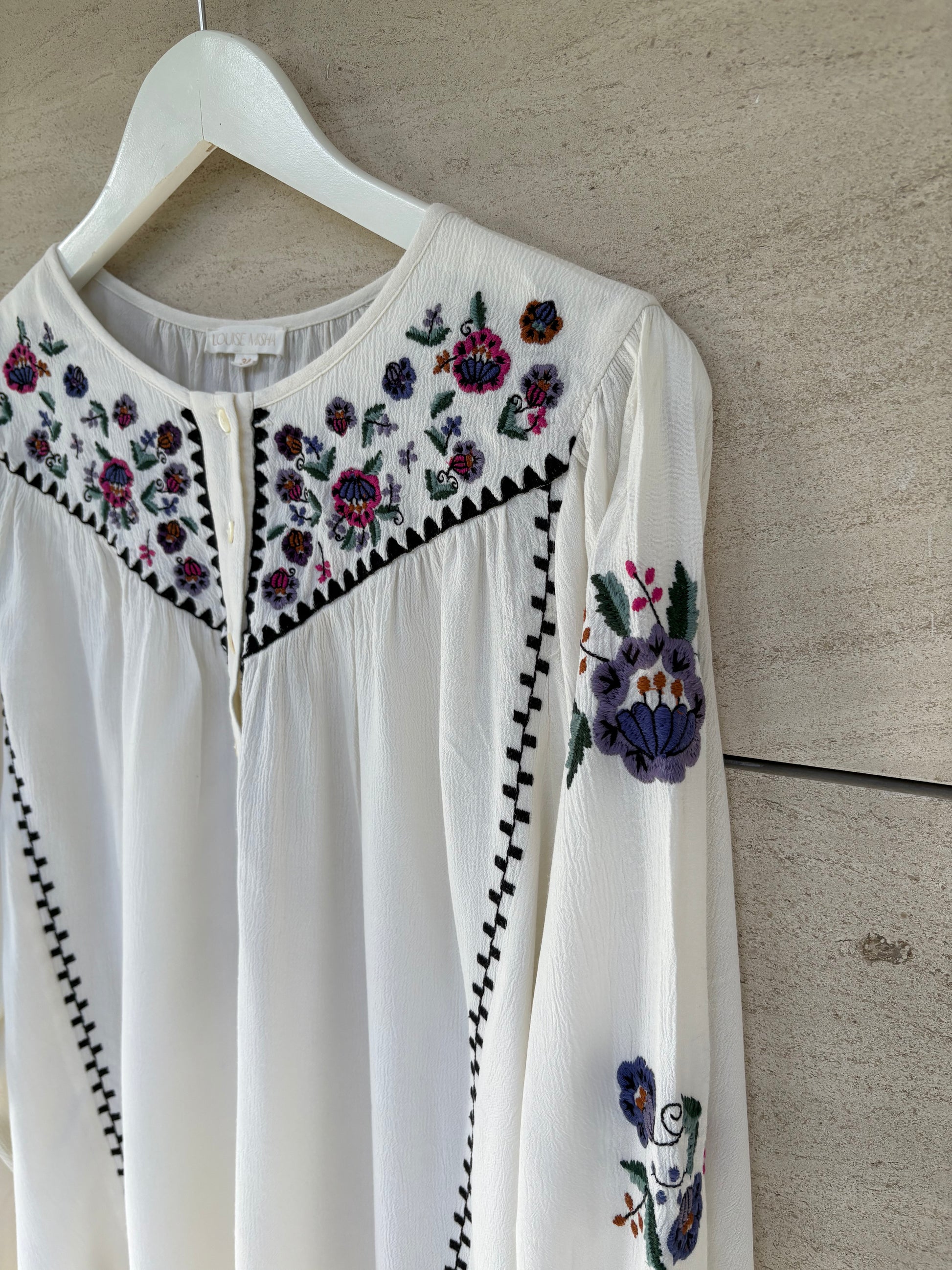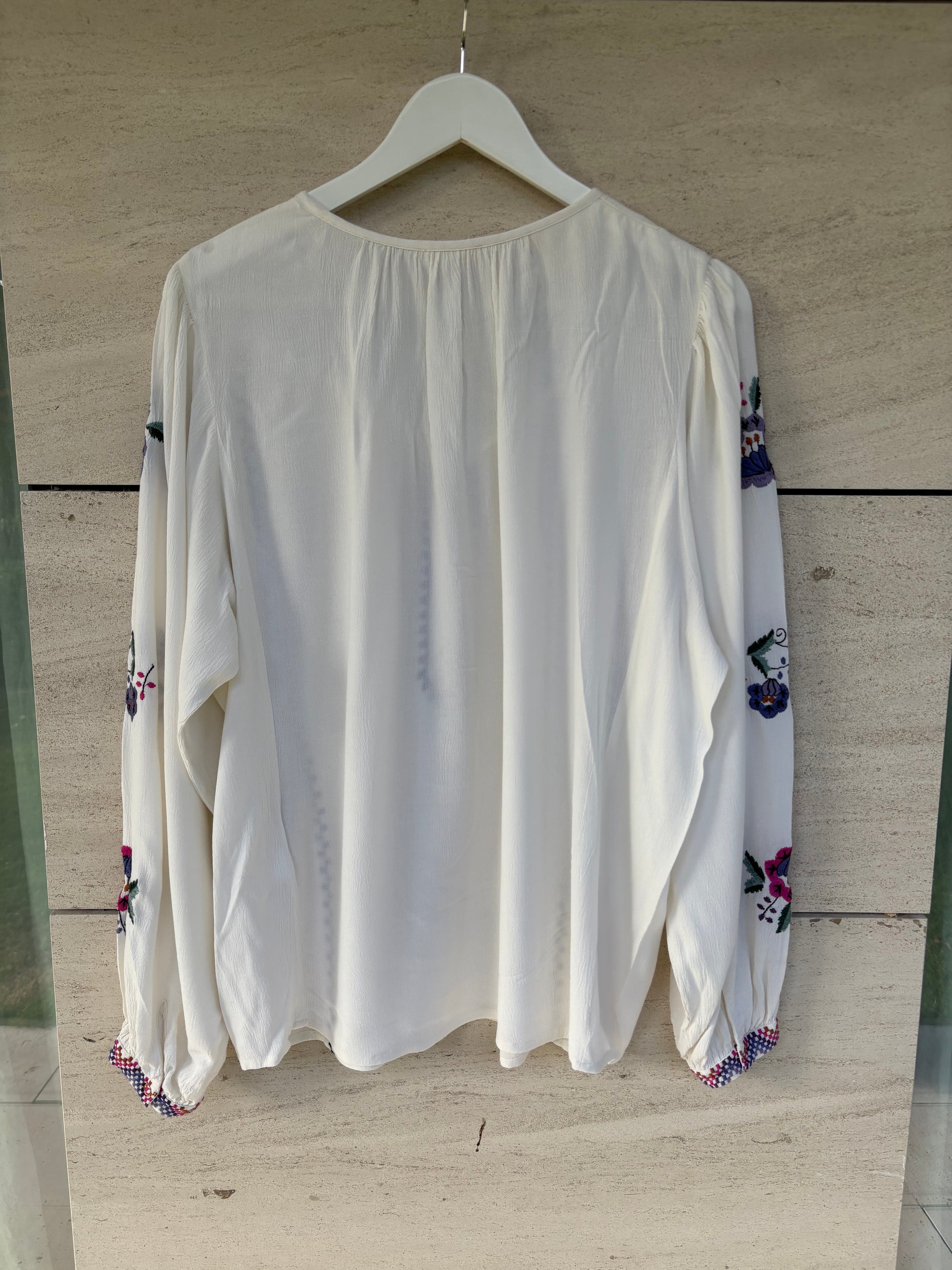 Talla como una M. Espalda 66 cm, largo 63 cm. No elástico / color crudo