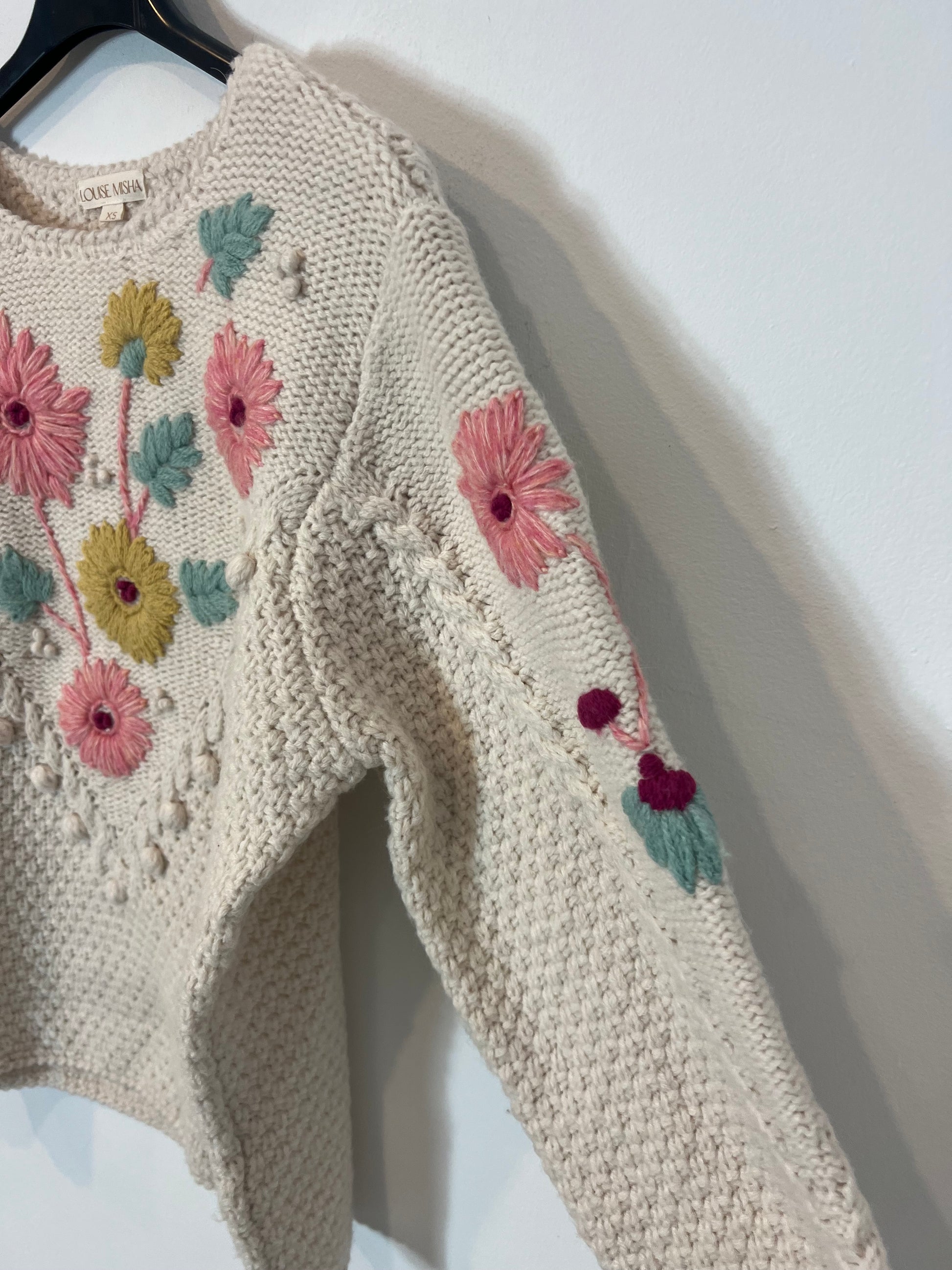 LOUISE MISHA. Jersey beige flores bordadas T.xs
