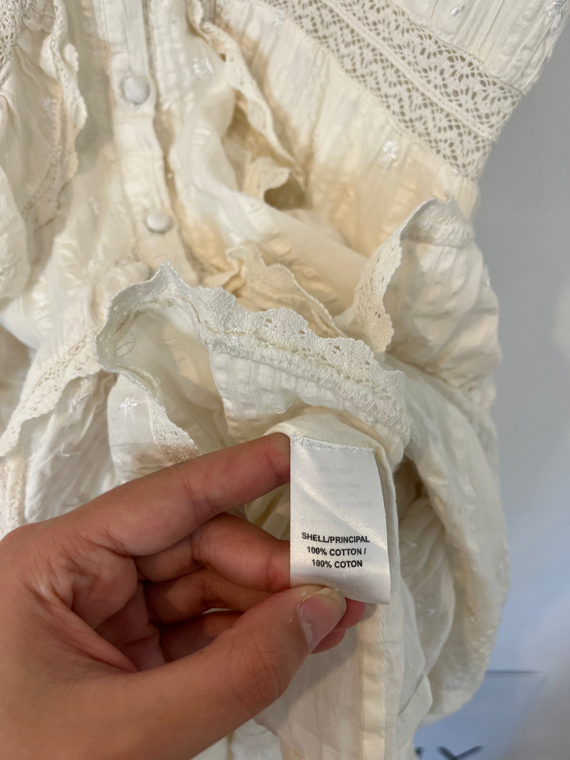 LOVE SHACK FANCY. Vestido corto bordados y encaje. T 2 (S/M)