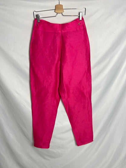 NUEVO CON ETIQUETA. Pantalón seda rosa fucsia Cintura 34cm, largo 97cm