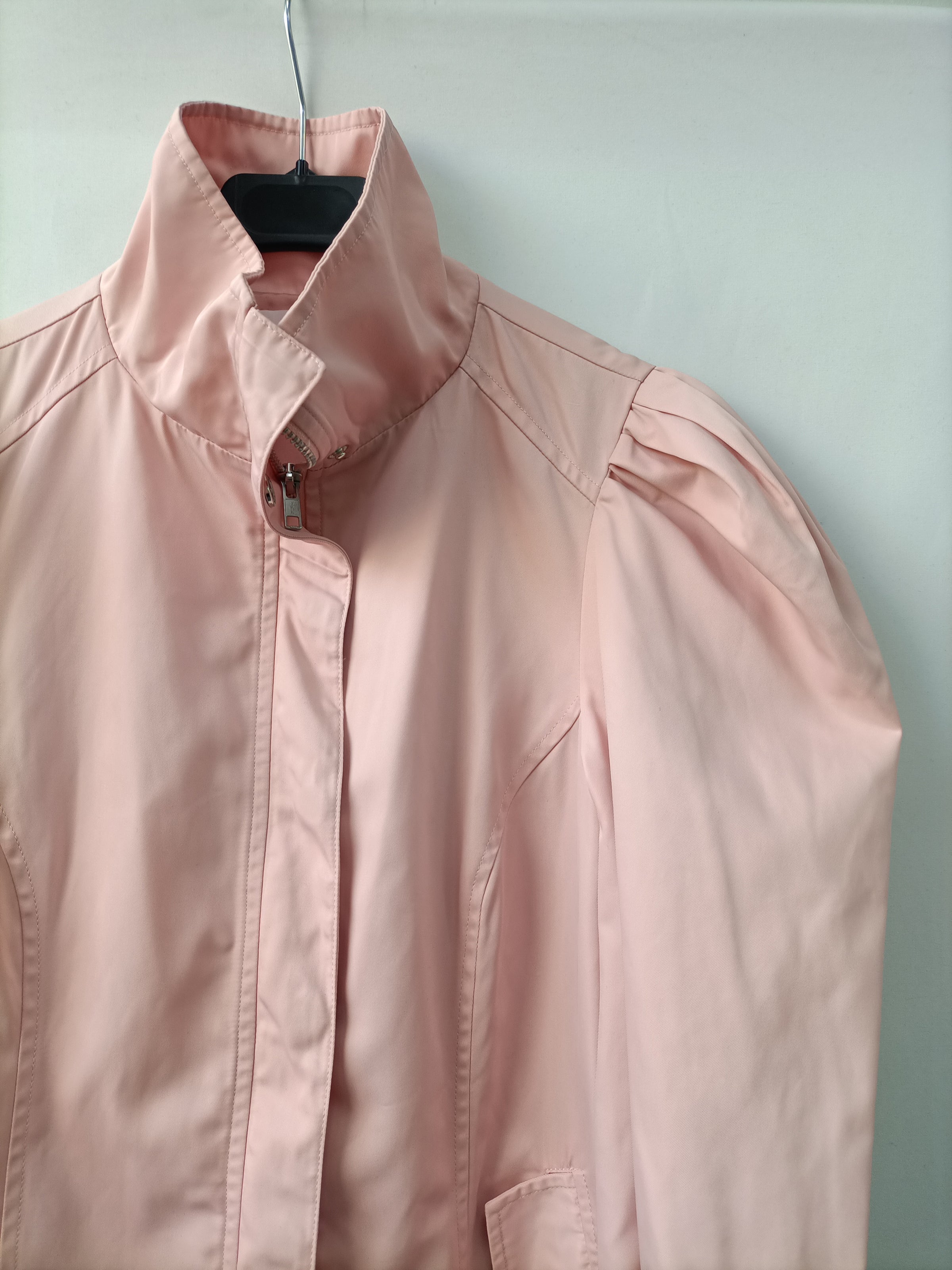Chaqueta/chubasquero rosa con mangas fruncidas. De sisa a sisa 44 cm largo 78 cm