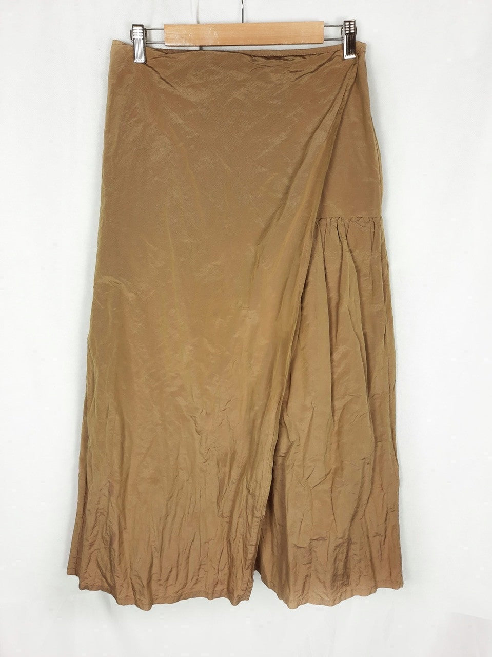Luisa cerano. Falda midi cruzada de tejido arrugado. Tiene volumen. Cintura 38 cm largo 98 cm