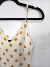 Lumiere. M. Top de lino beige con lunares en tono mostaza. Fluido con los tirantes ajustables. De sisa a sisa 47 cm largo 57 cm