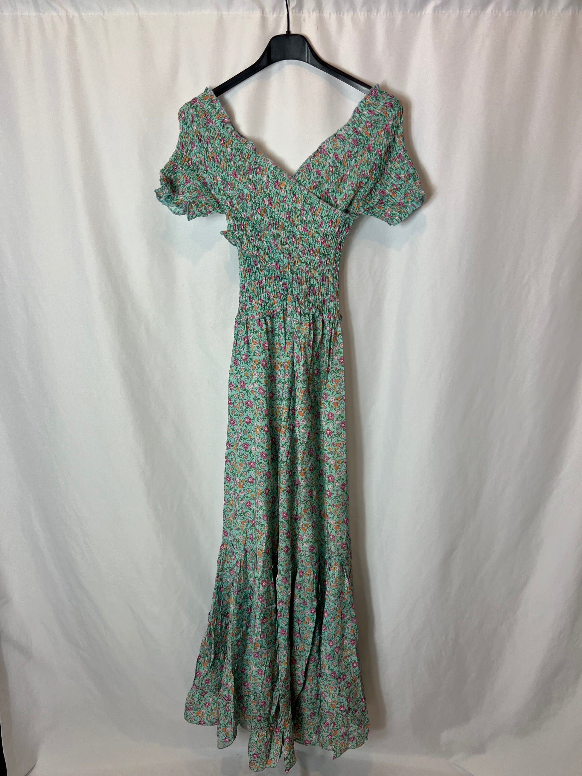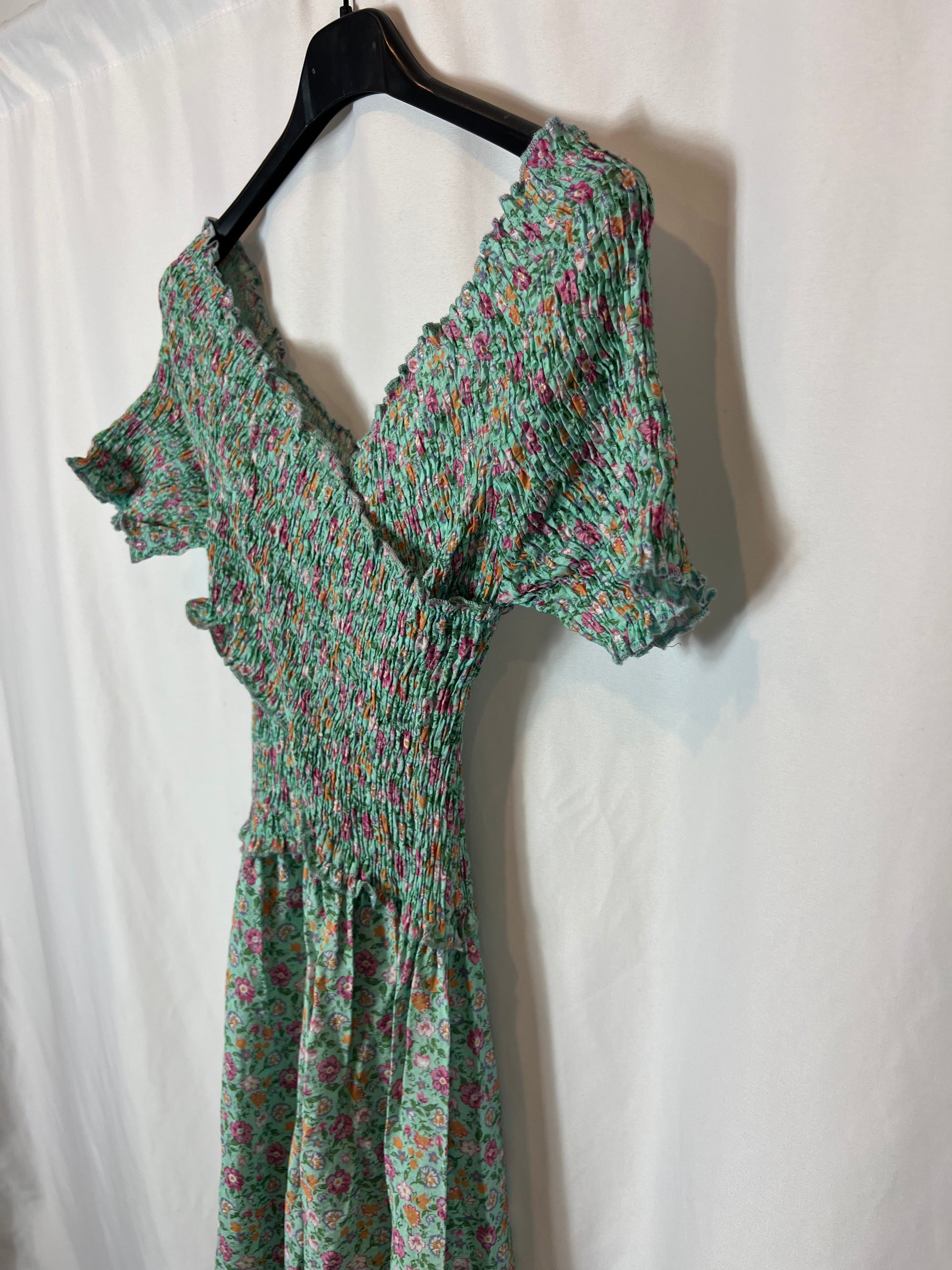 LUNA LLENA. Vestido verde flores T.s