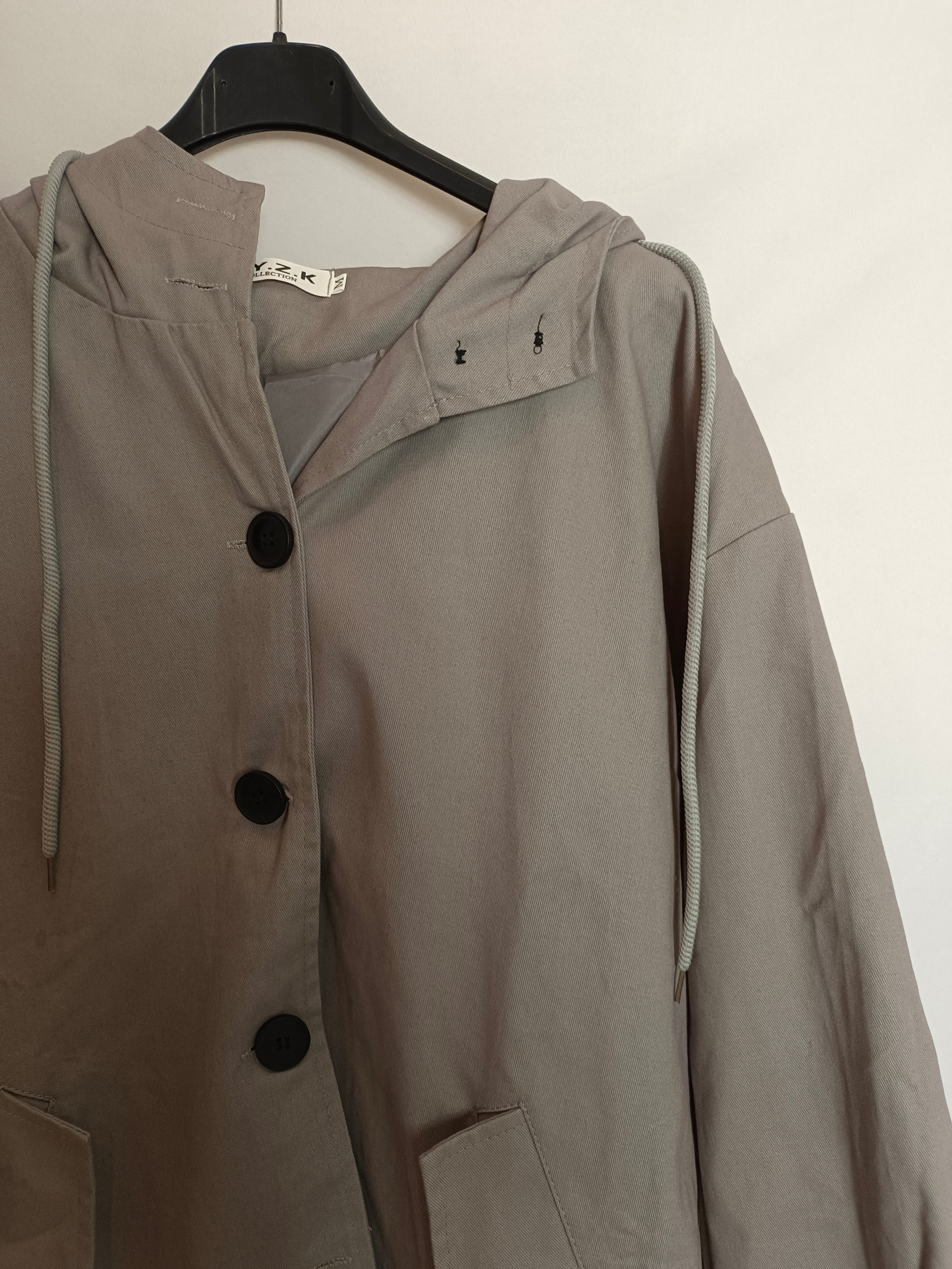 parka fina gris abotonada con capucha