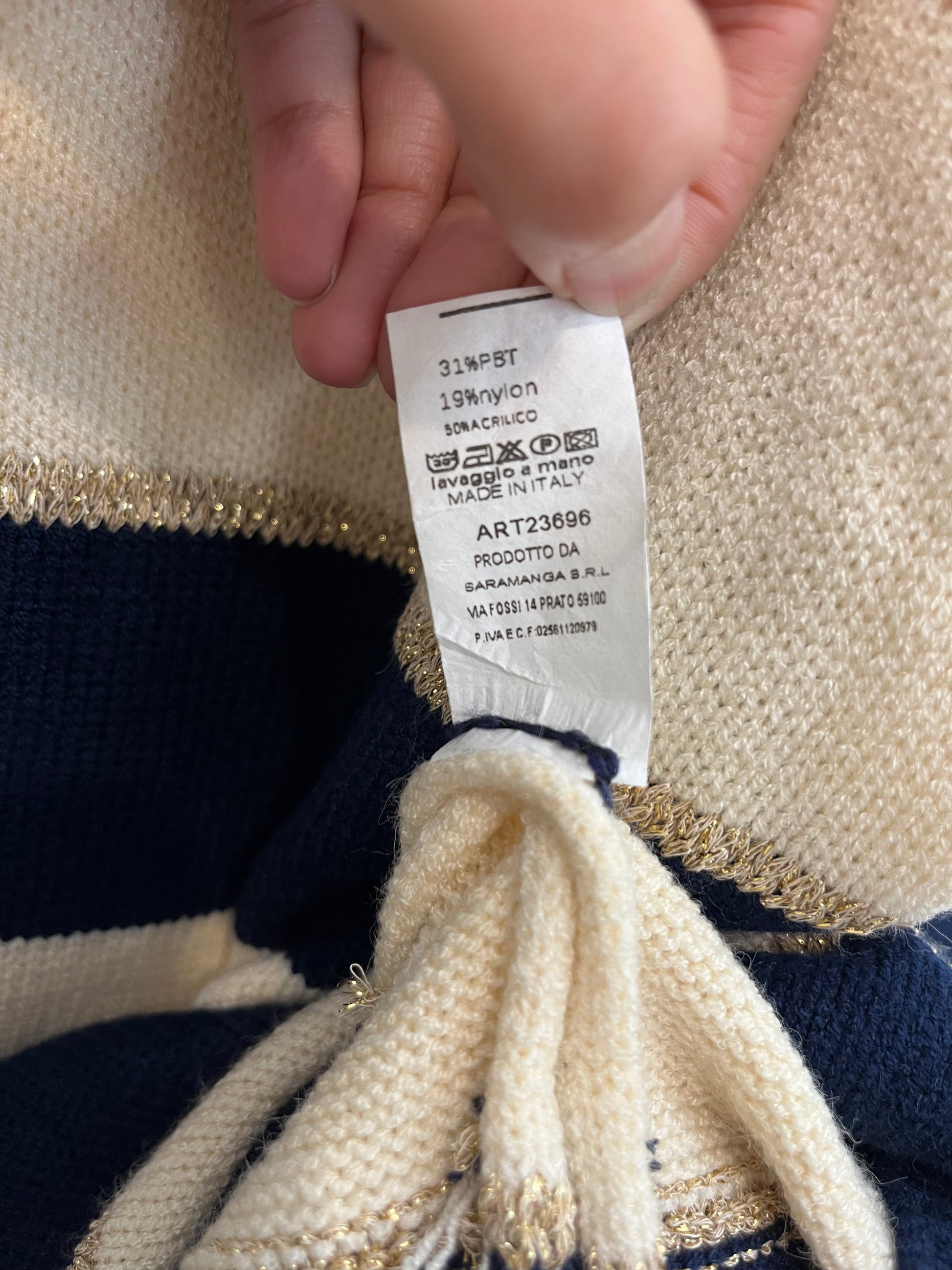 Nuevo con etiqueta. Cárdigan rayas con detalles dorados. Largo 67 cm
