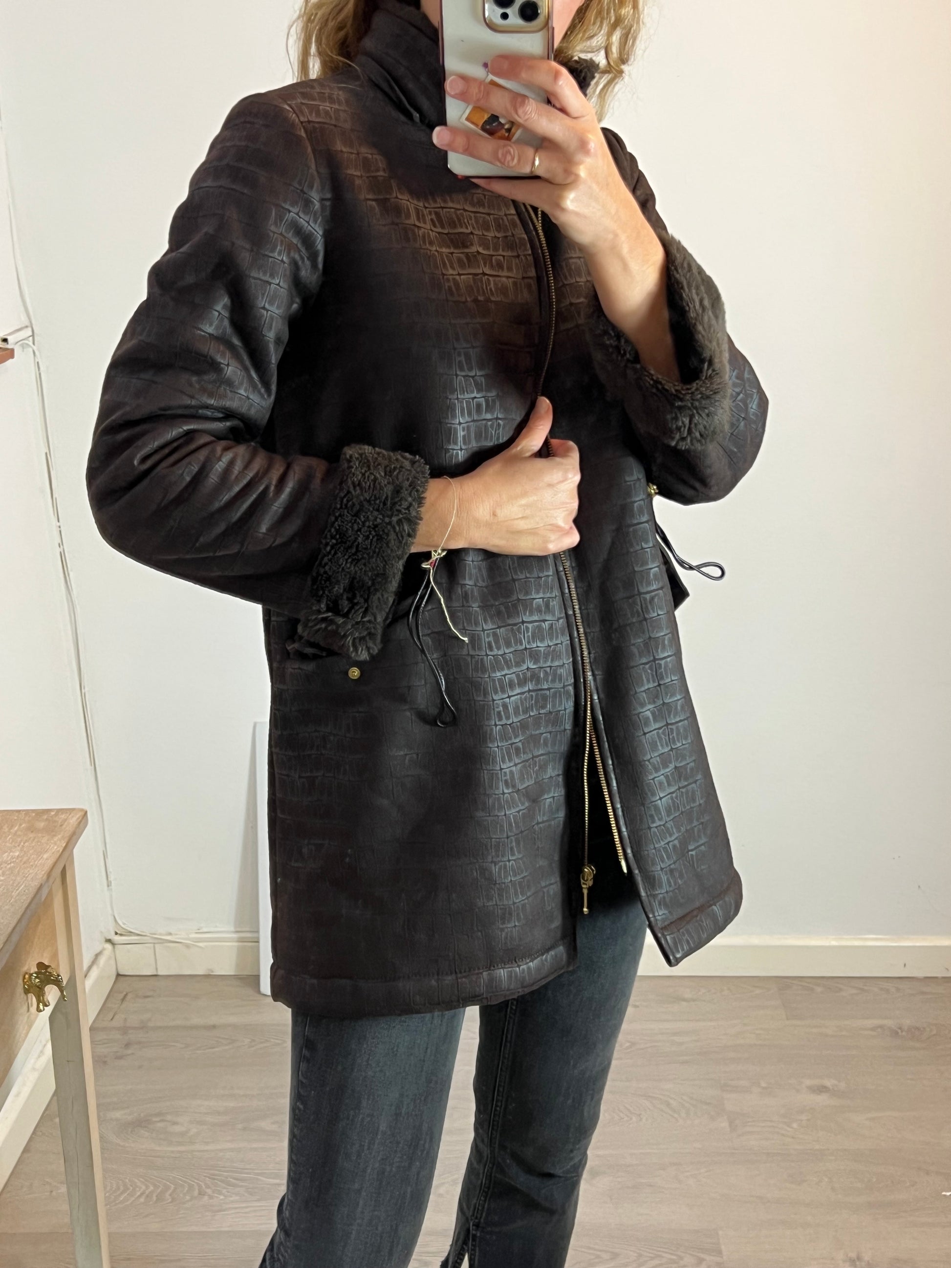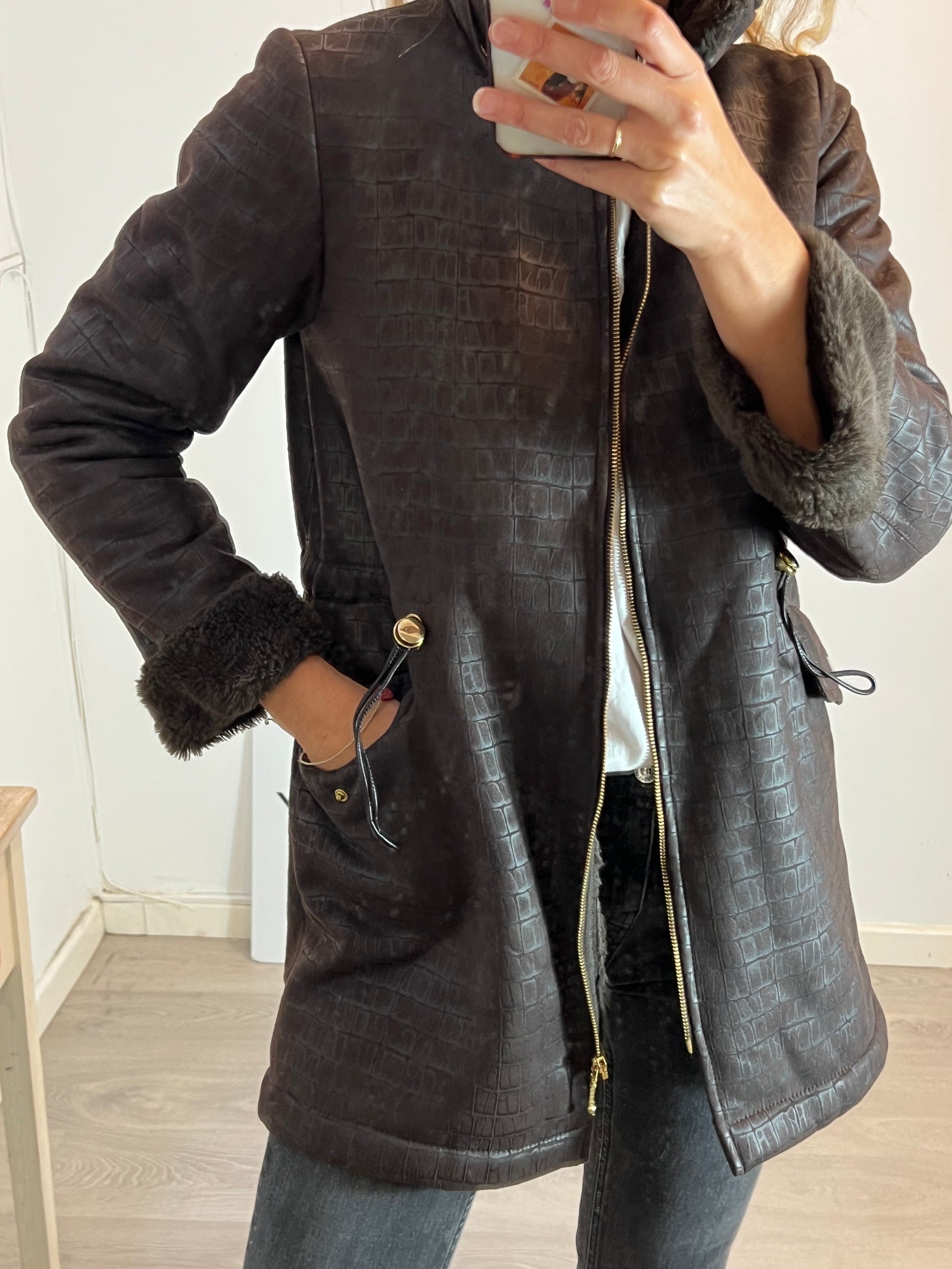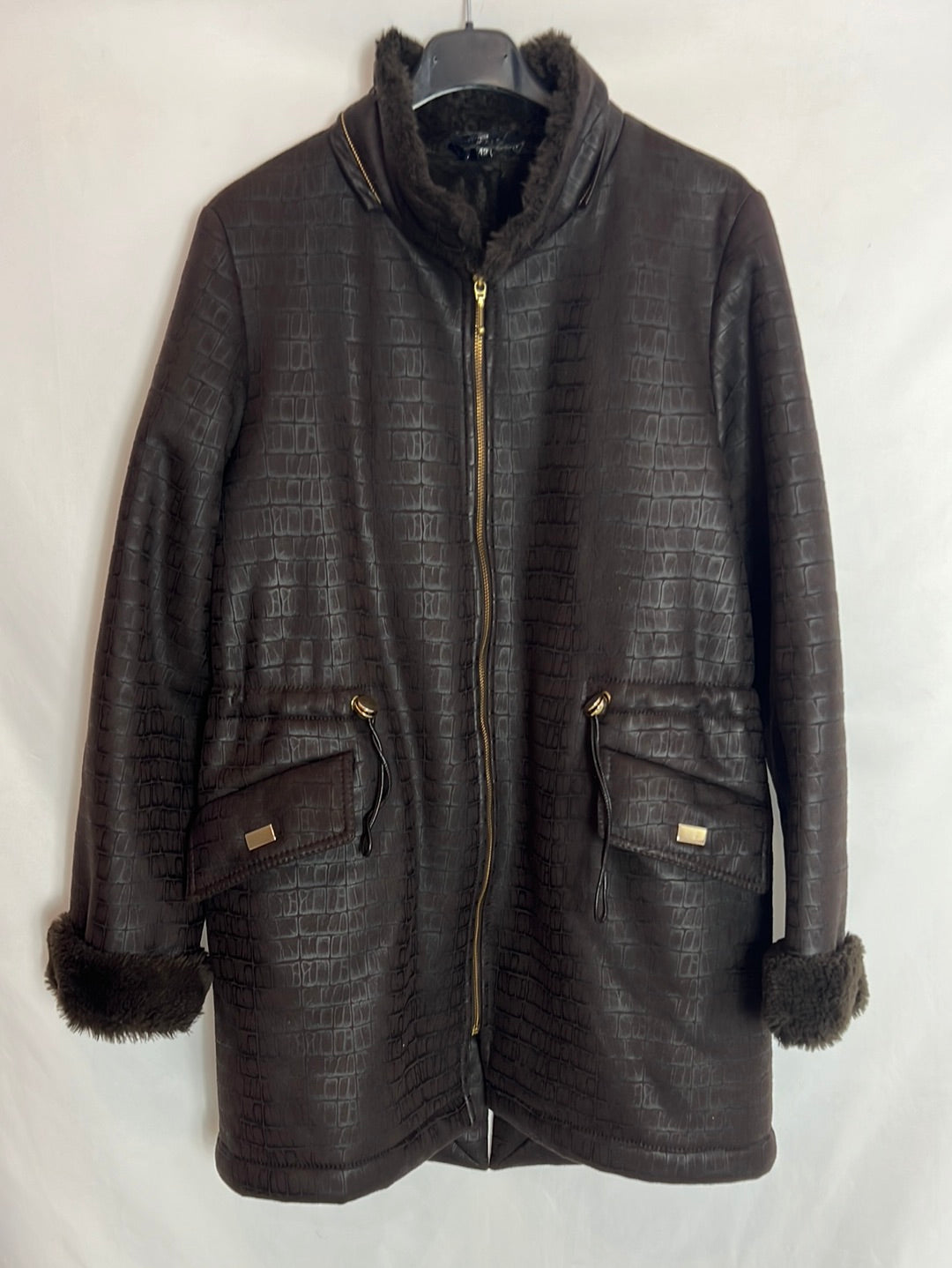 Abrigo marrón efecto serpiente e interior de pelito. Largo 84 cm y de sisa a sisa 45cm