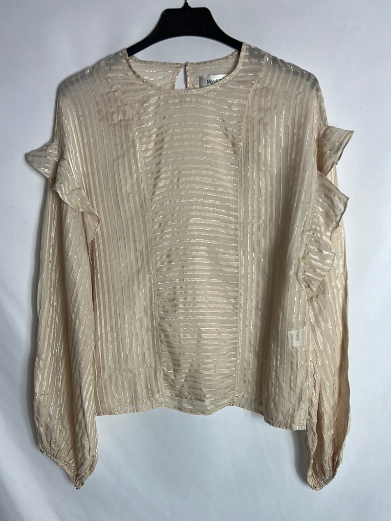 MAGALI PASCAL. Blusa beige semitransparente hilos dorados. T S