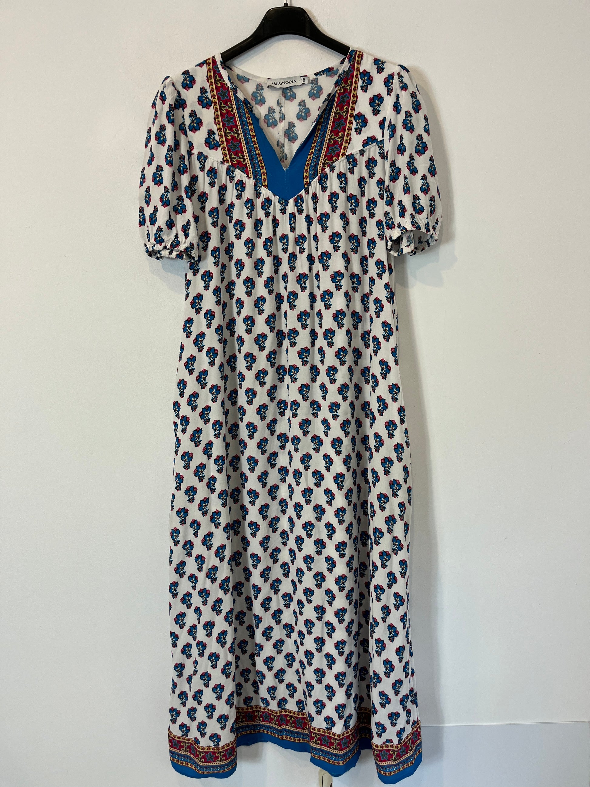 MAGNOLYA. Vestido blanco flores azules T.00(xs)