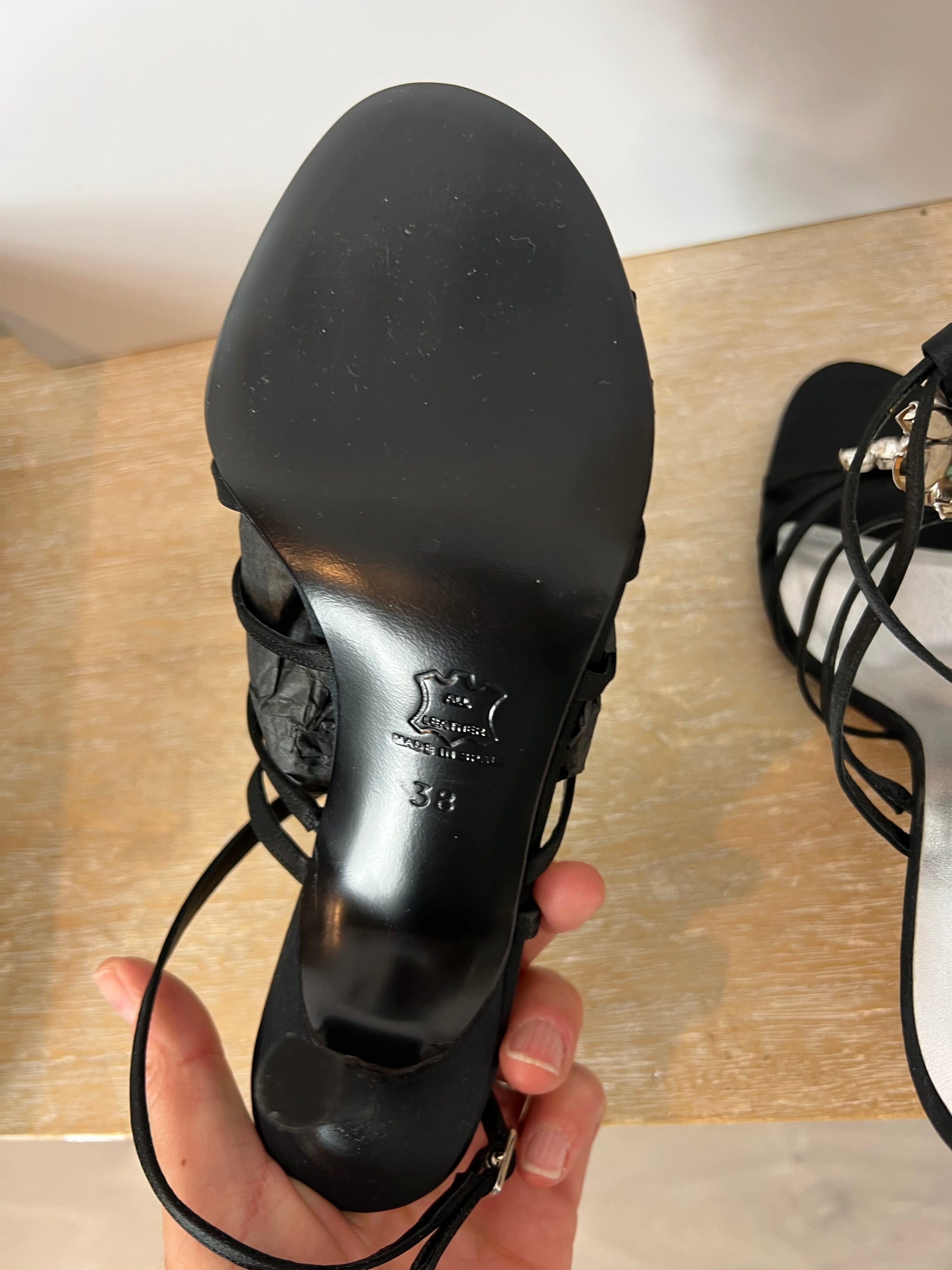 NUEVOS SIN USO. Sandalia negra pedrería tiras. 10cm