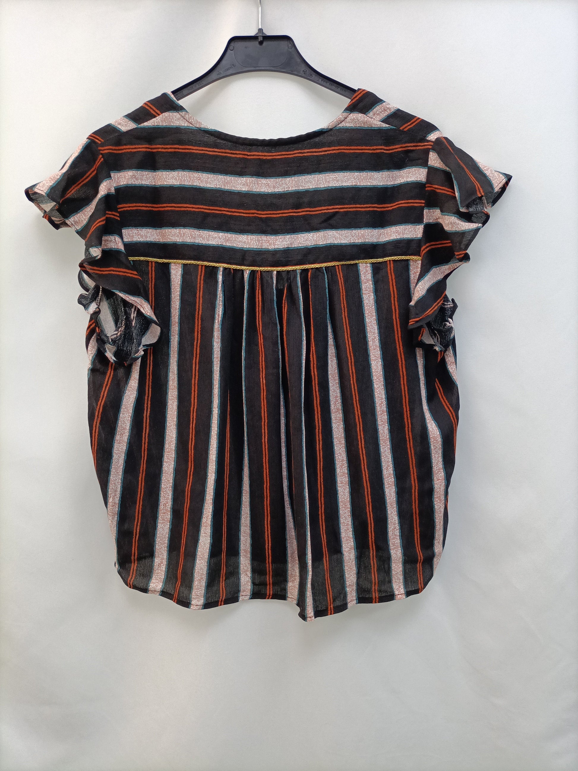 NUEVO CON ETIQUETA. Top negro abotonado de rayas. de sisa a sisa 55 cm Largo 56cm