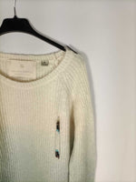 Maison scotch. Jersey de punto beige y verde degradado con detalle de abalorio. Elástico. Largo 66 cm