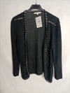 chaqueta de punto negra con detalle metálicos
