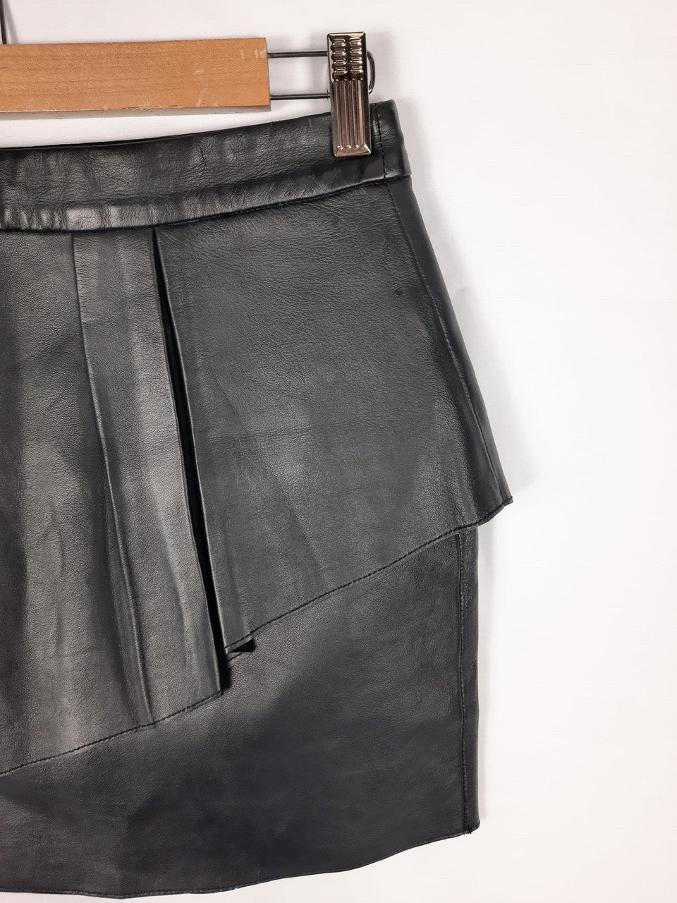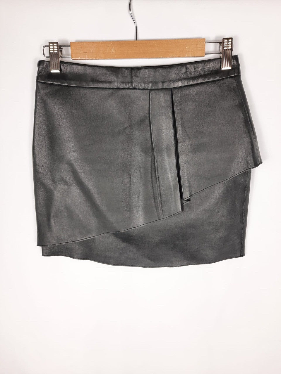 Maje. Falda negra corta con mini volantes. 100% piel. No elástica. De sisa a sisa 36 cm largo 37 cm