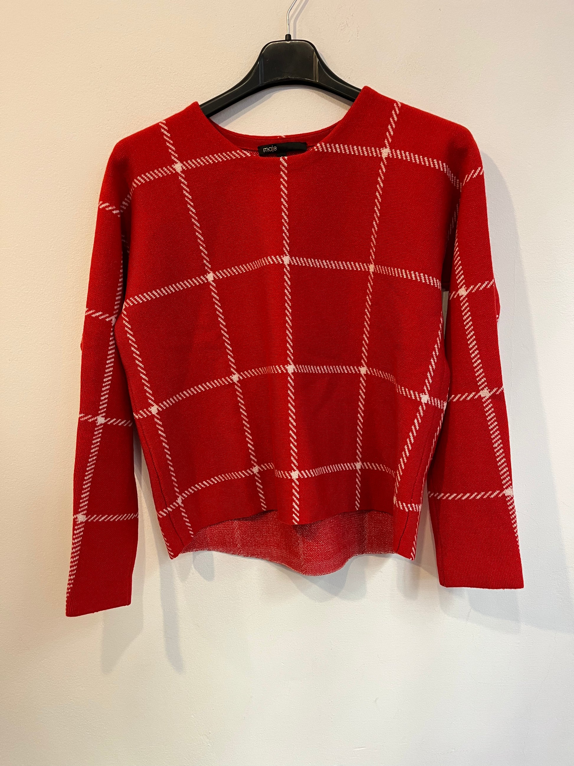 MAJE. Jersey rojo con lana cuadros. T 1(S)