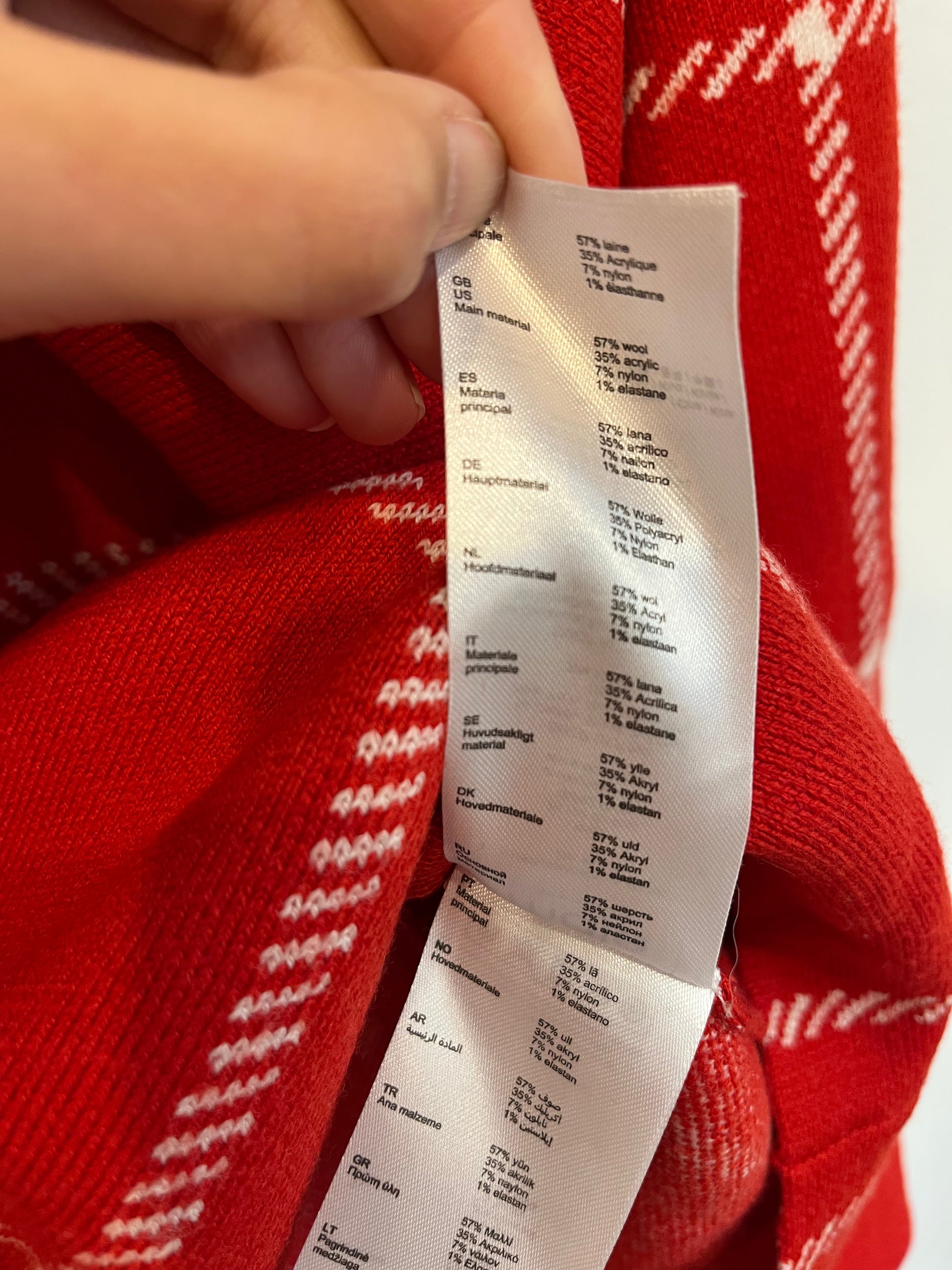 Jersey rojo con lana cuadros. Semi elástico, De sisa a sisa 52cm, largo espalda 56 cm