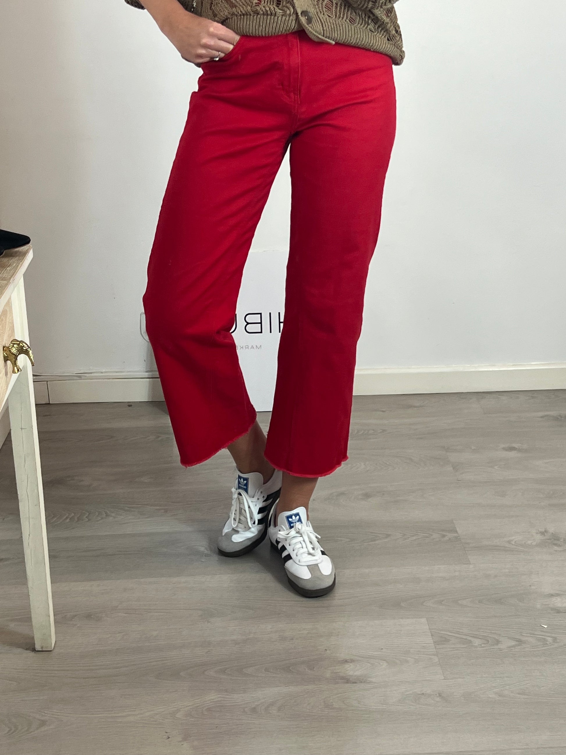 MAJE. Pantalón denim rojo T.38