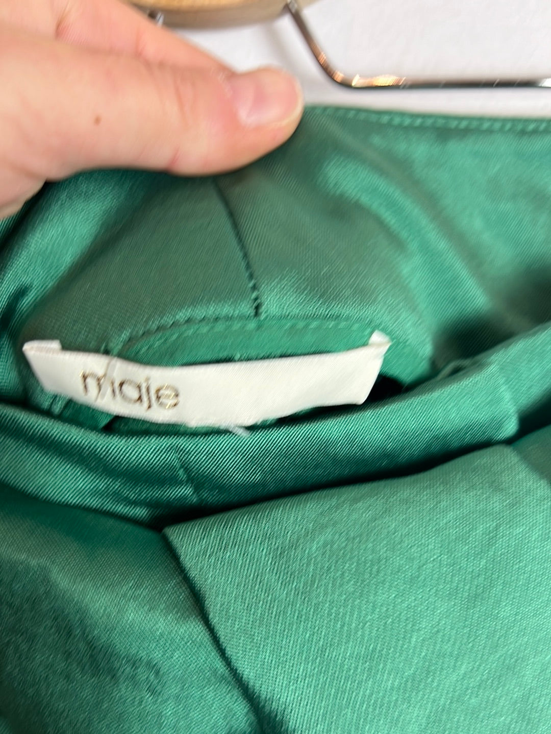 pantalón pinzas verde satinado con lazada . Cintura 33cm, largo 101cm