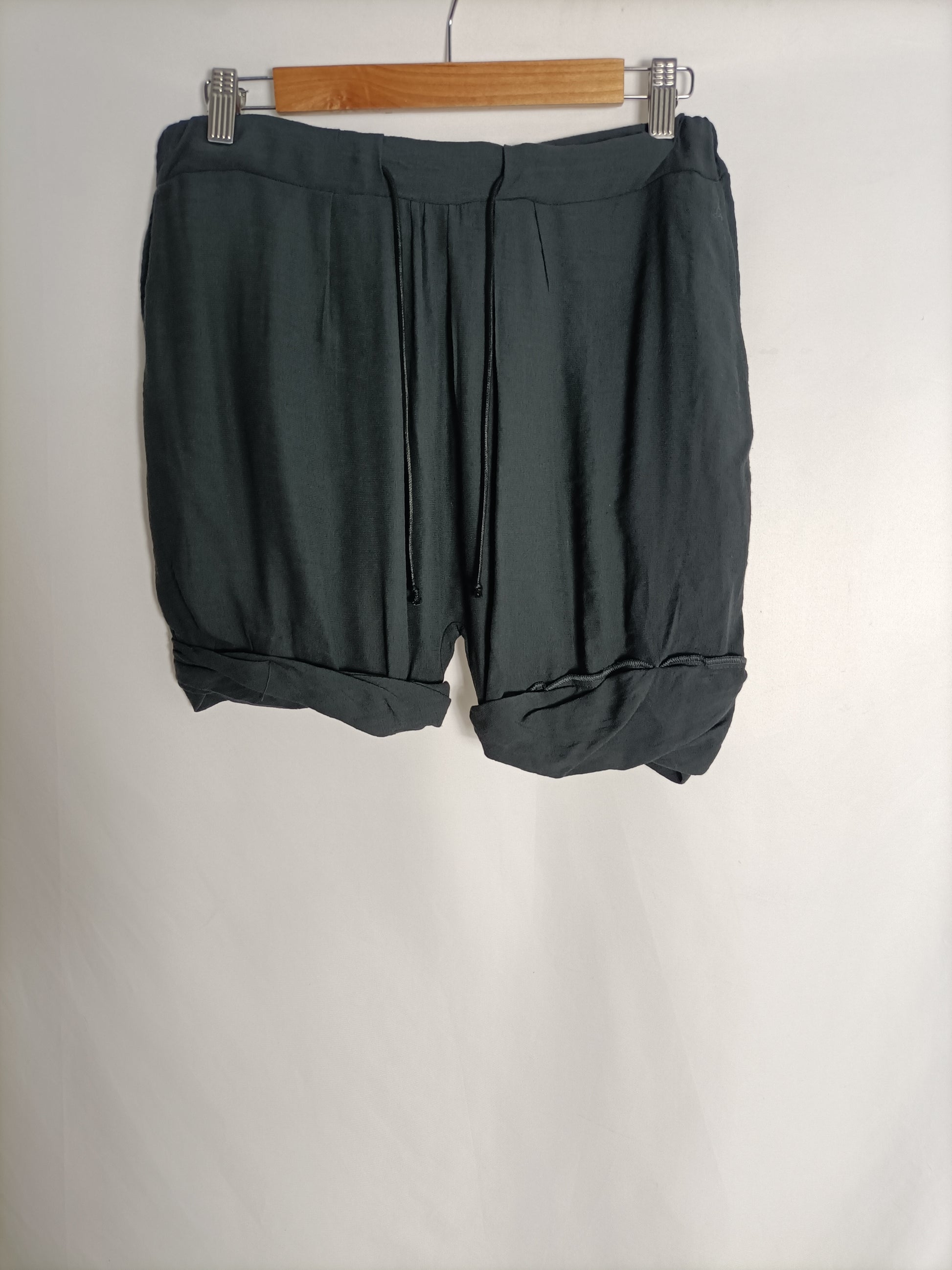 Pantalón corto fluido efecto bombacho. cintura elástica ajustable