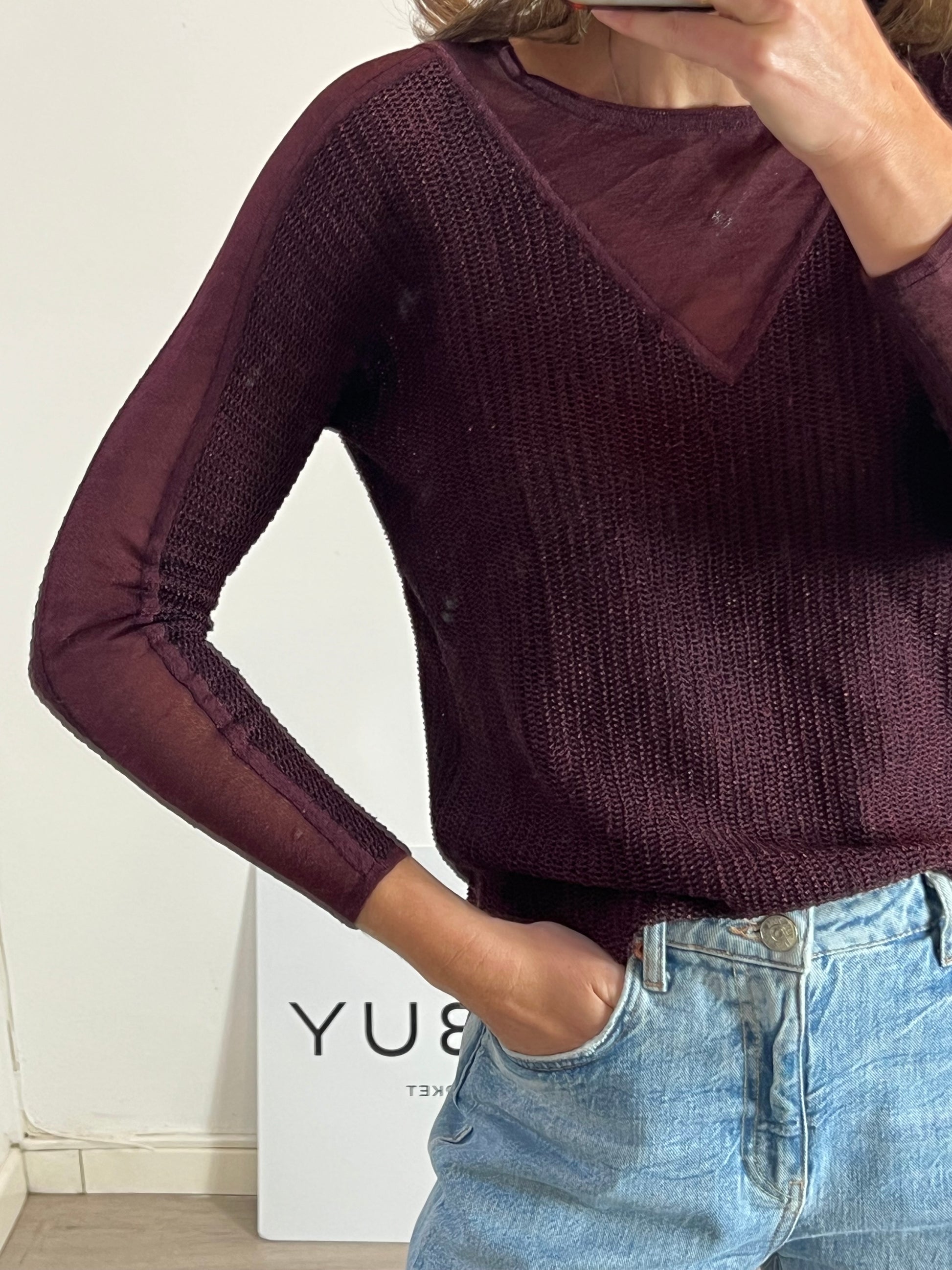 Top de punto burdoes con hilos metálicos. Largo 57 cm