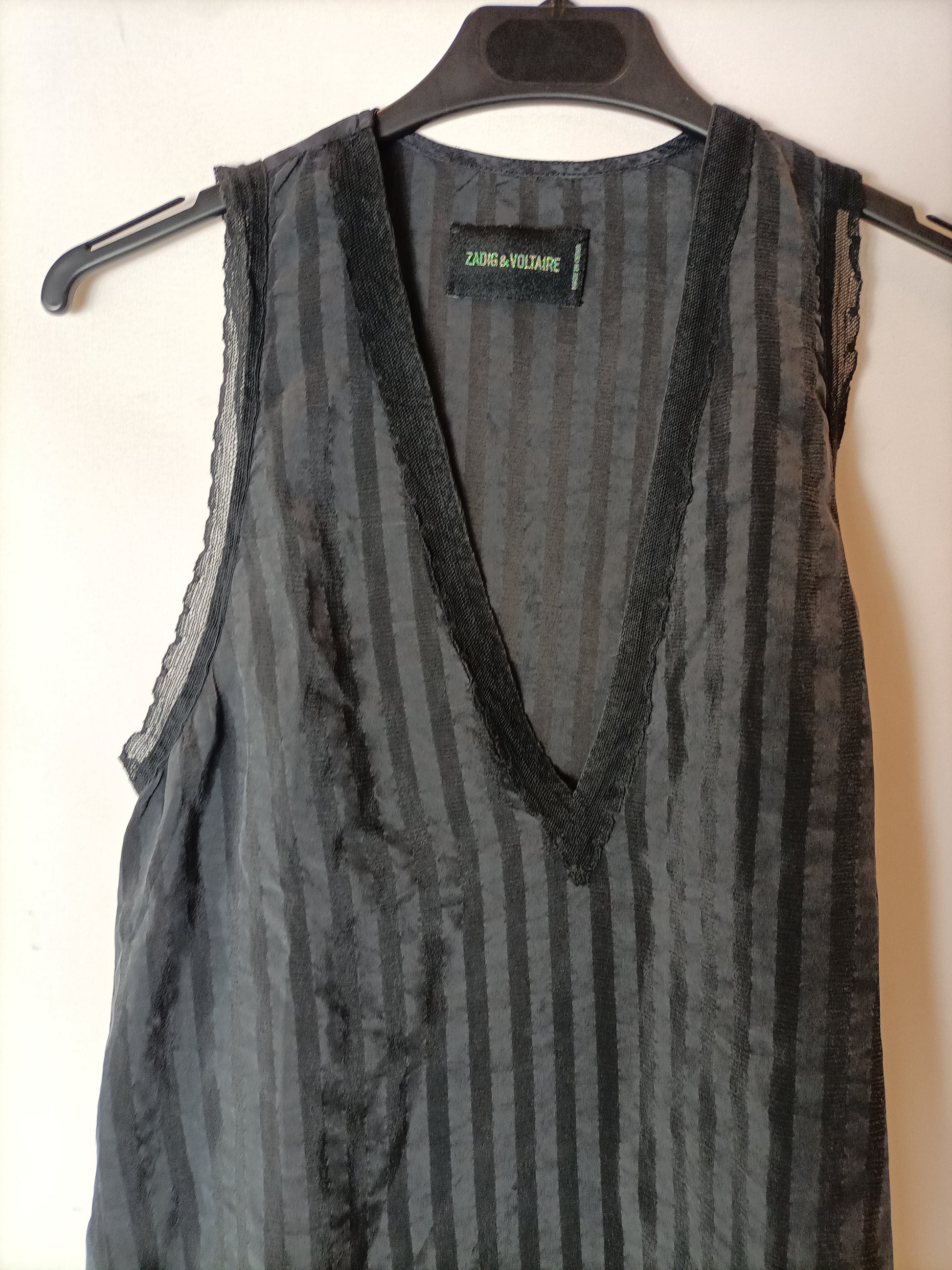 ZADIG&VOLTAIRE. Top negro rayas y encaje. T XS