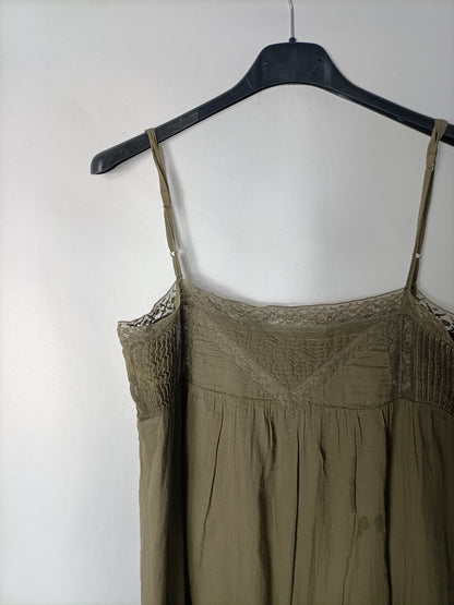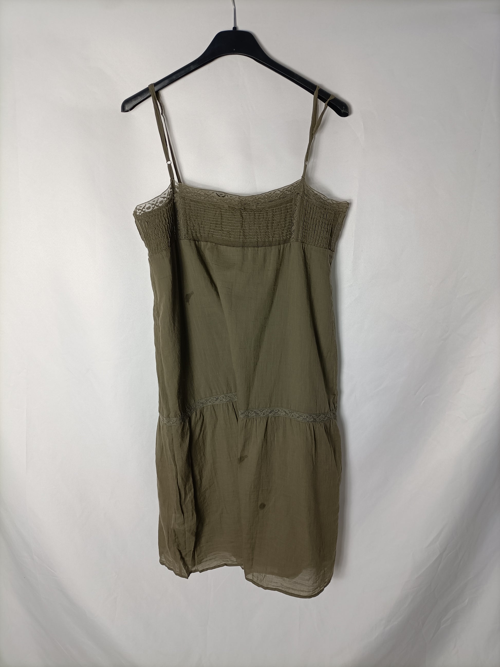 Vestido verde caqui tirantes. Tejido no elástico. Tirantes regulables