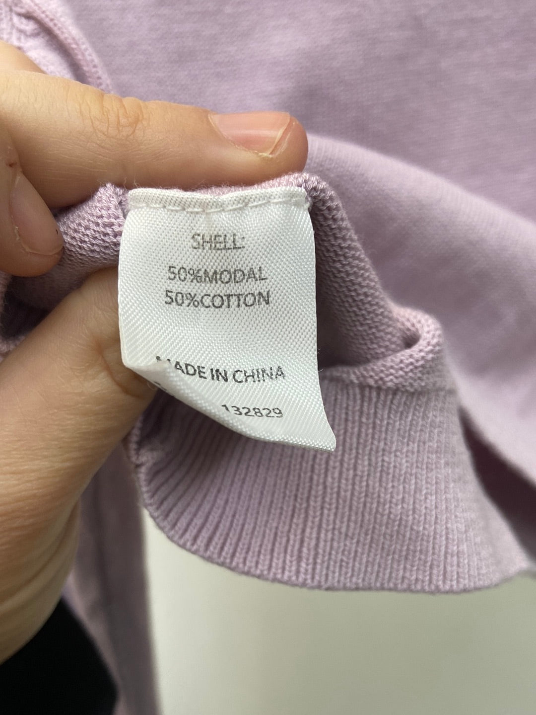 Jersey cortito con hombres ligeramente abullonados de punto elástico, color malva . largo 37 cm .