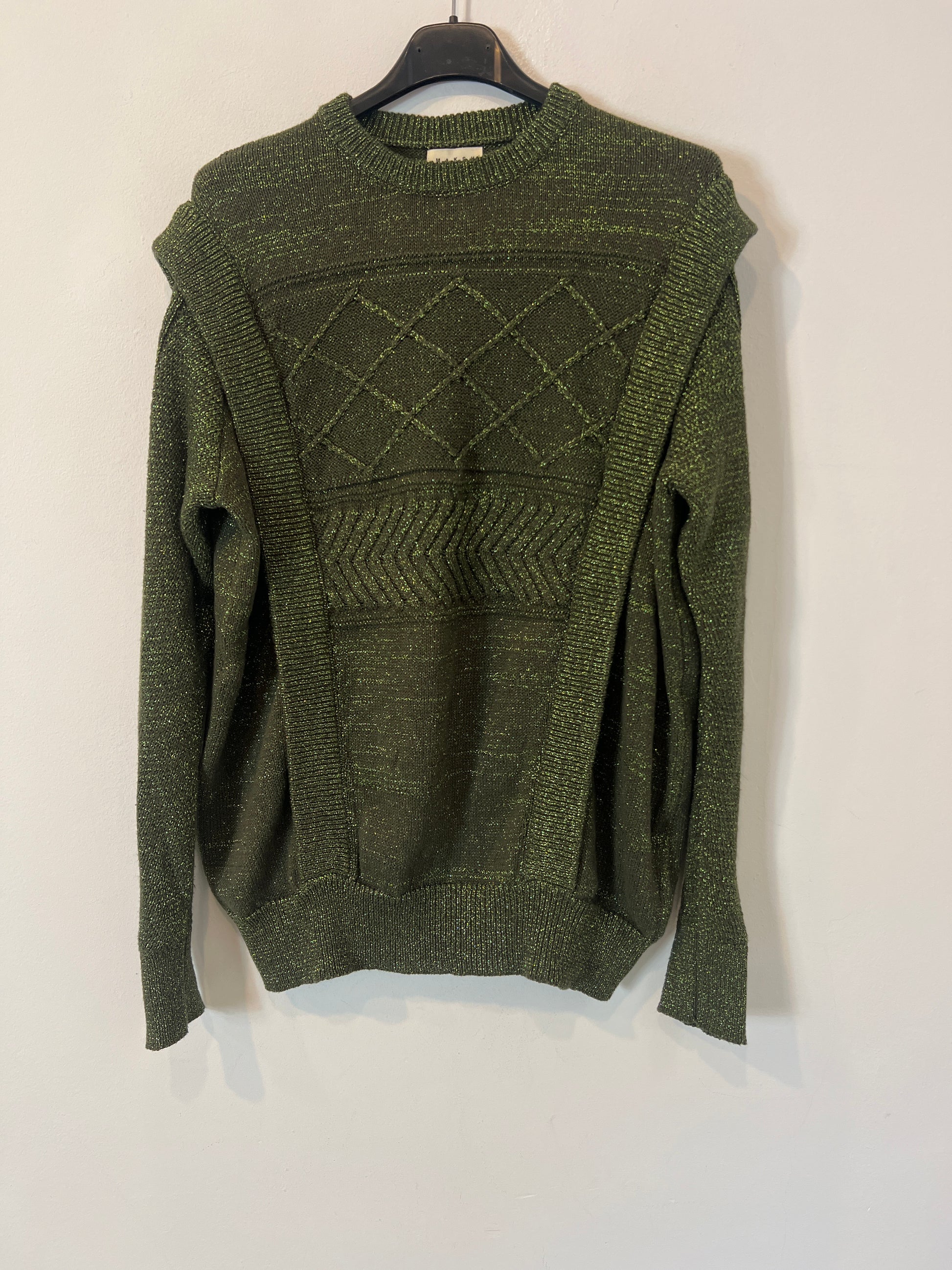 jersey verde con detalle de hilos metálicos. Largo 62 cm