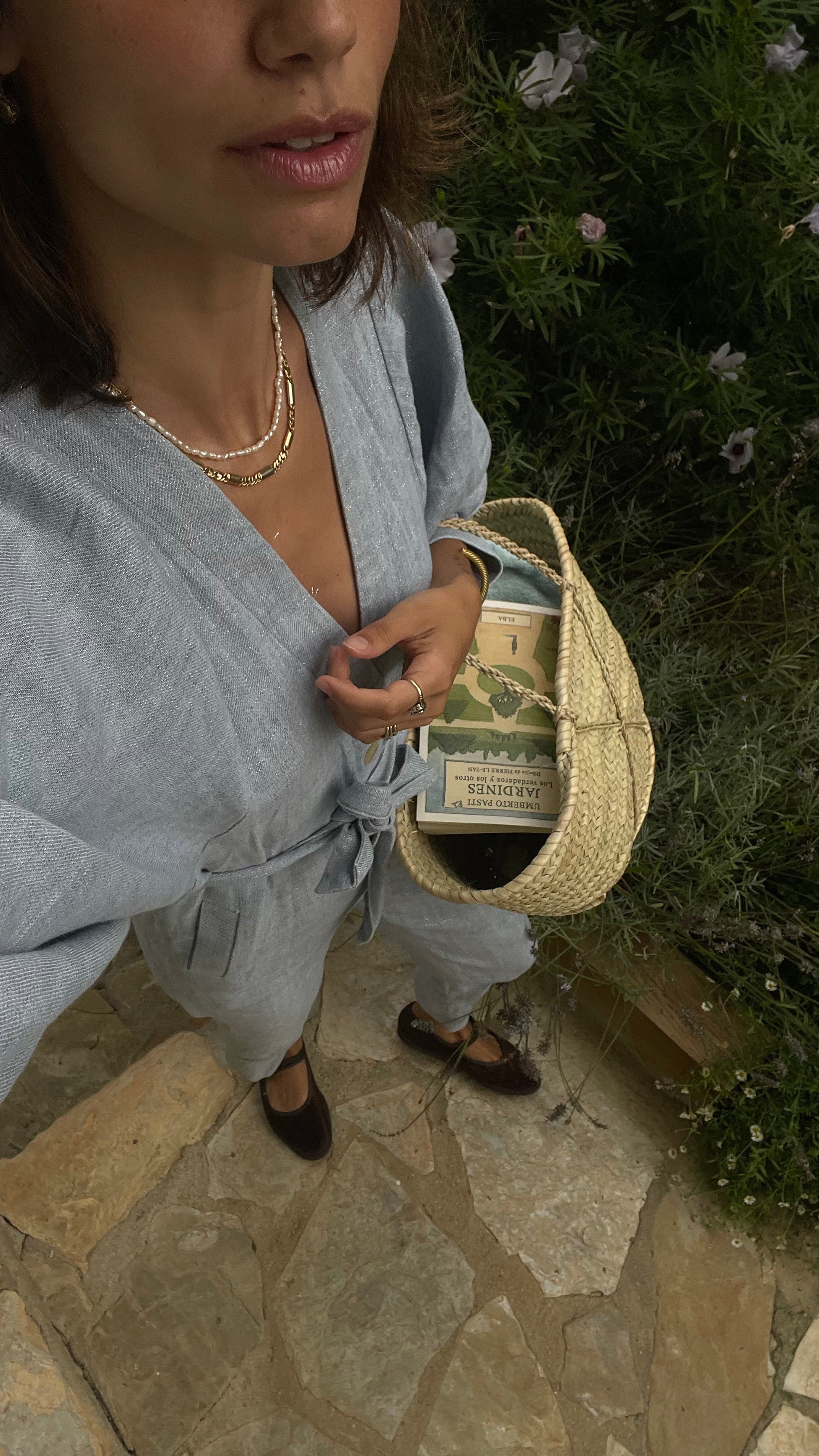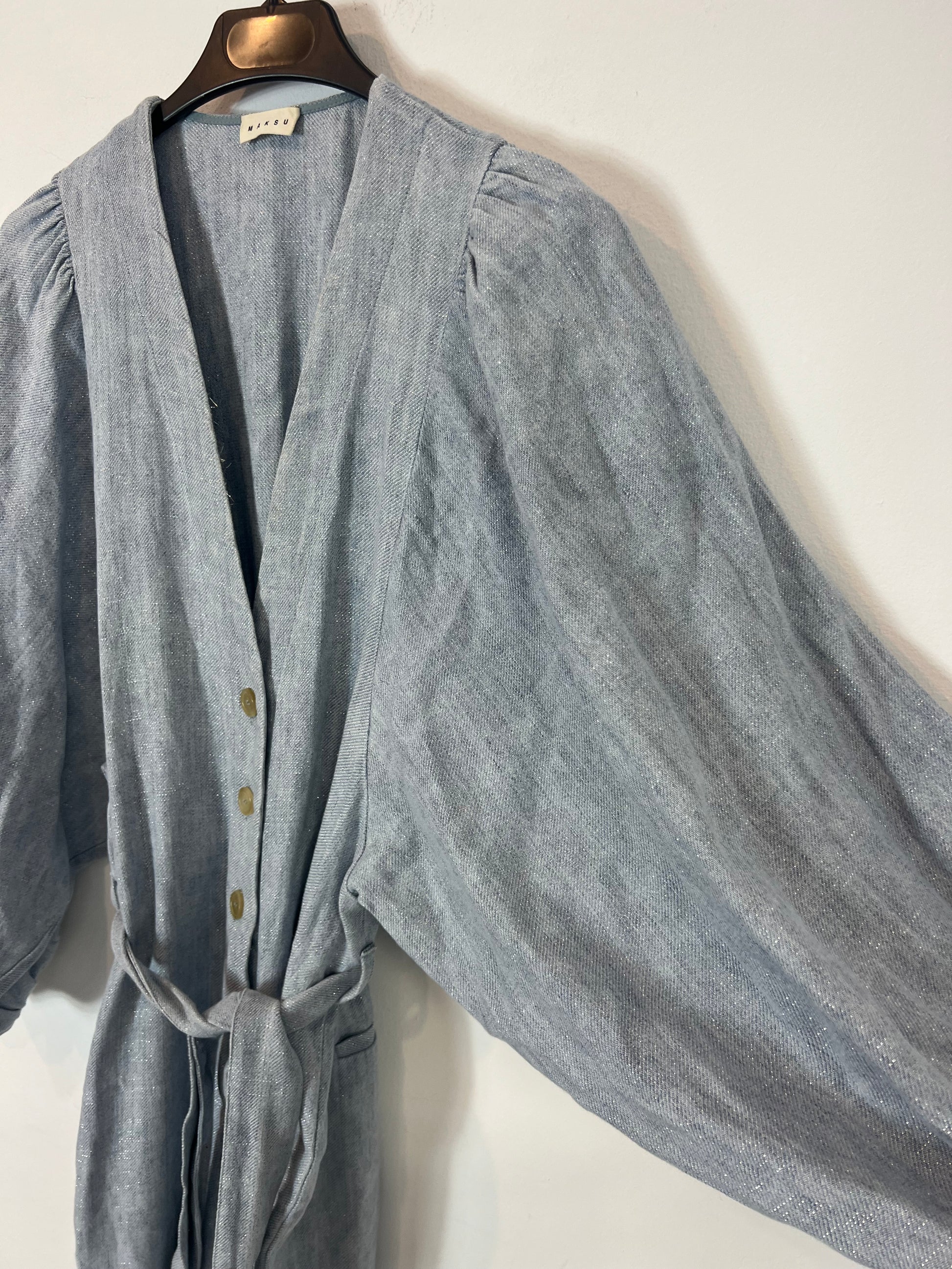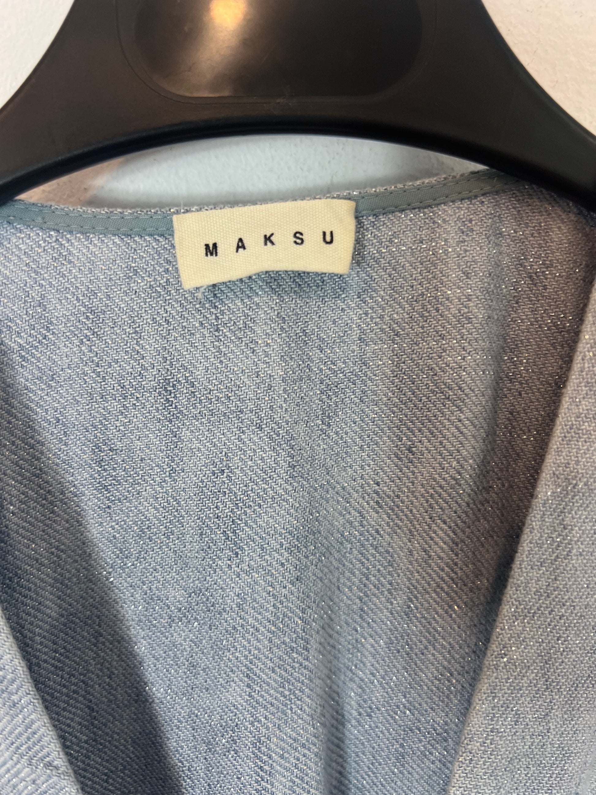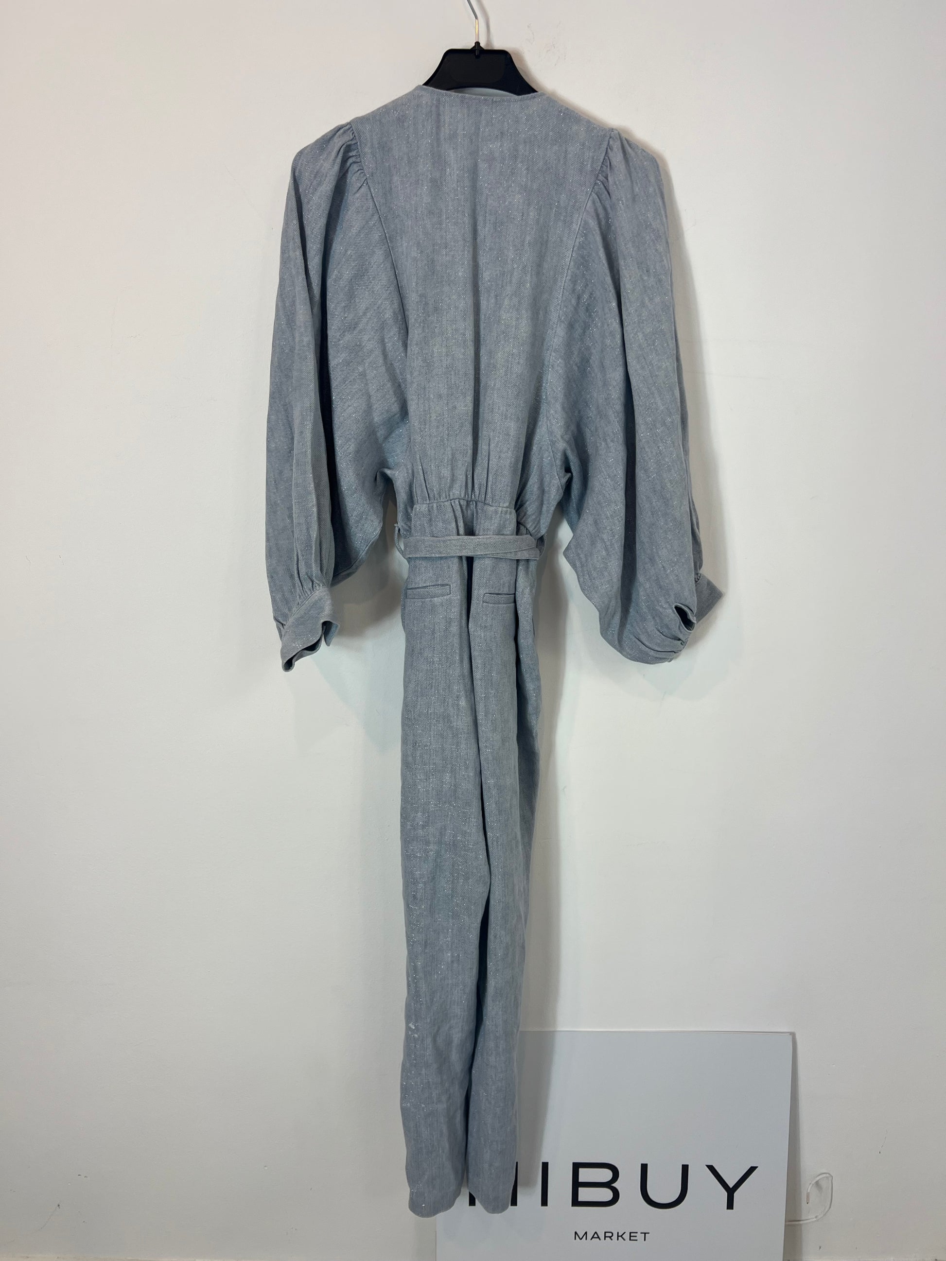 MAKSU. Mono azul largo lino detalle hilos T.s